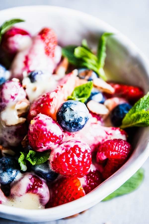 Berry Cheesecake Fruit Salad is going to be your new favorite way to eat fruit! The homemade HEALTHY creamy dressing is out of this world!