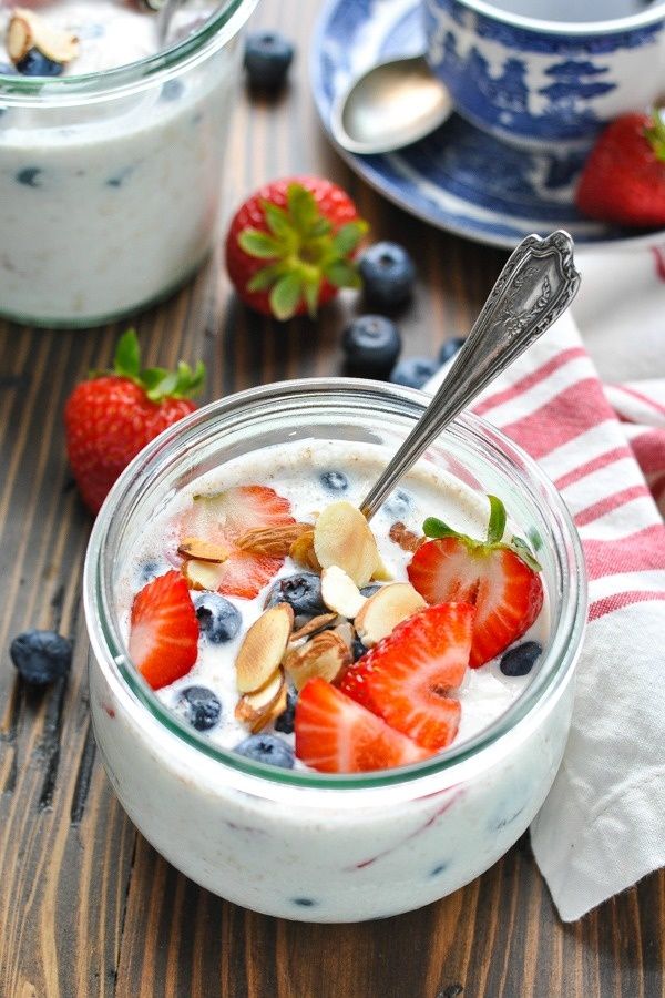 The perfect make-ahead healthy breakfast: Berry Overnight Oatmeal! In this quick and easy recipe, soft and chewy oats are combined with fresh strawberries and blueberries for a nutritious, high protein breakfast or snack.