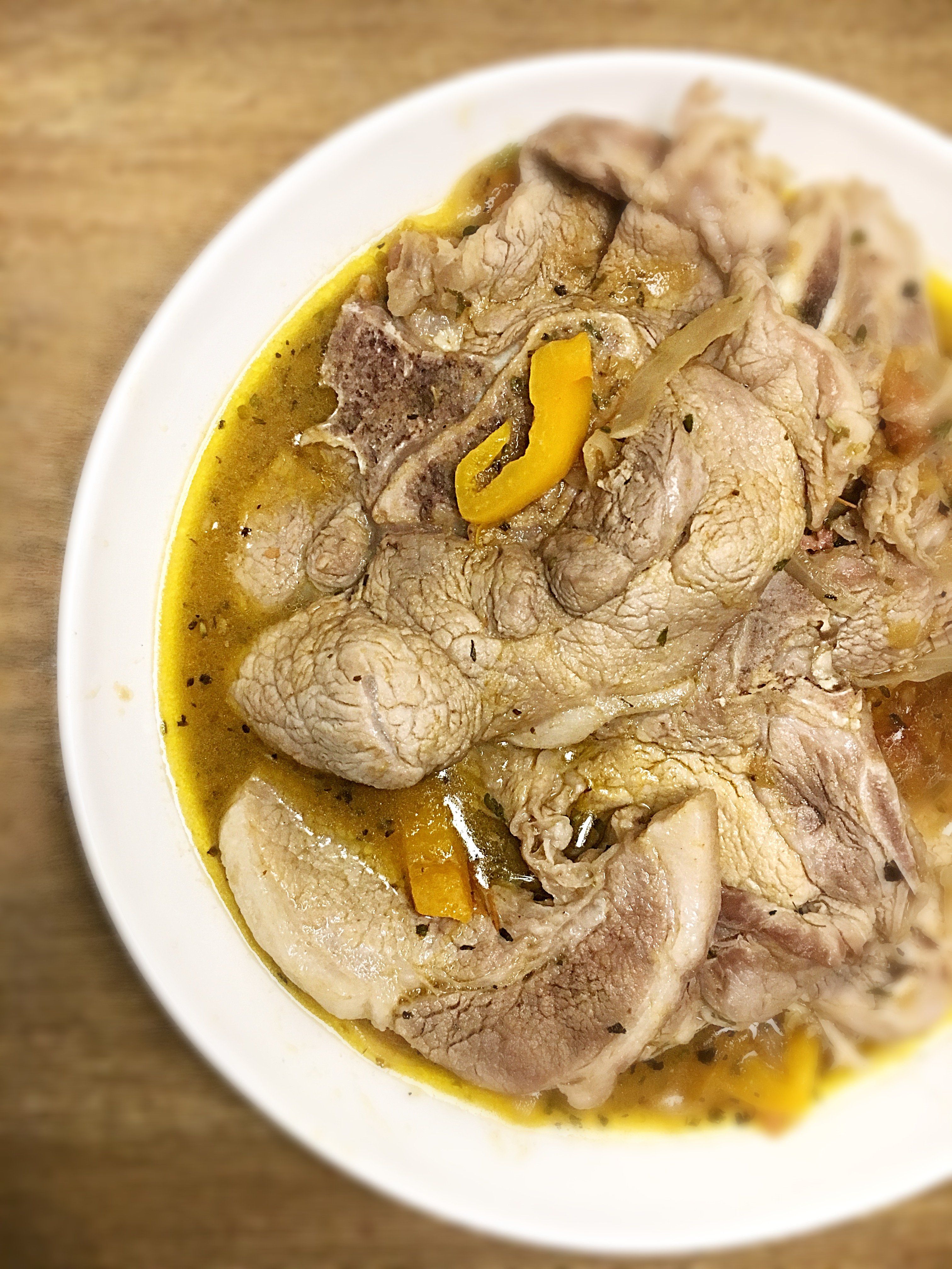 Tender Pork Loin Chops braised in olive oil, soy sauce and white wine.