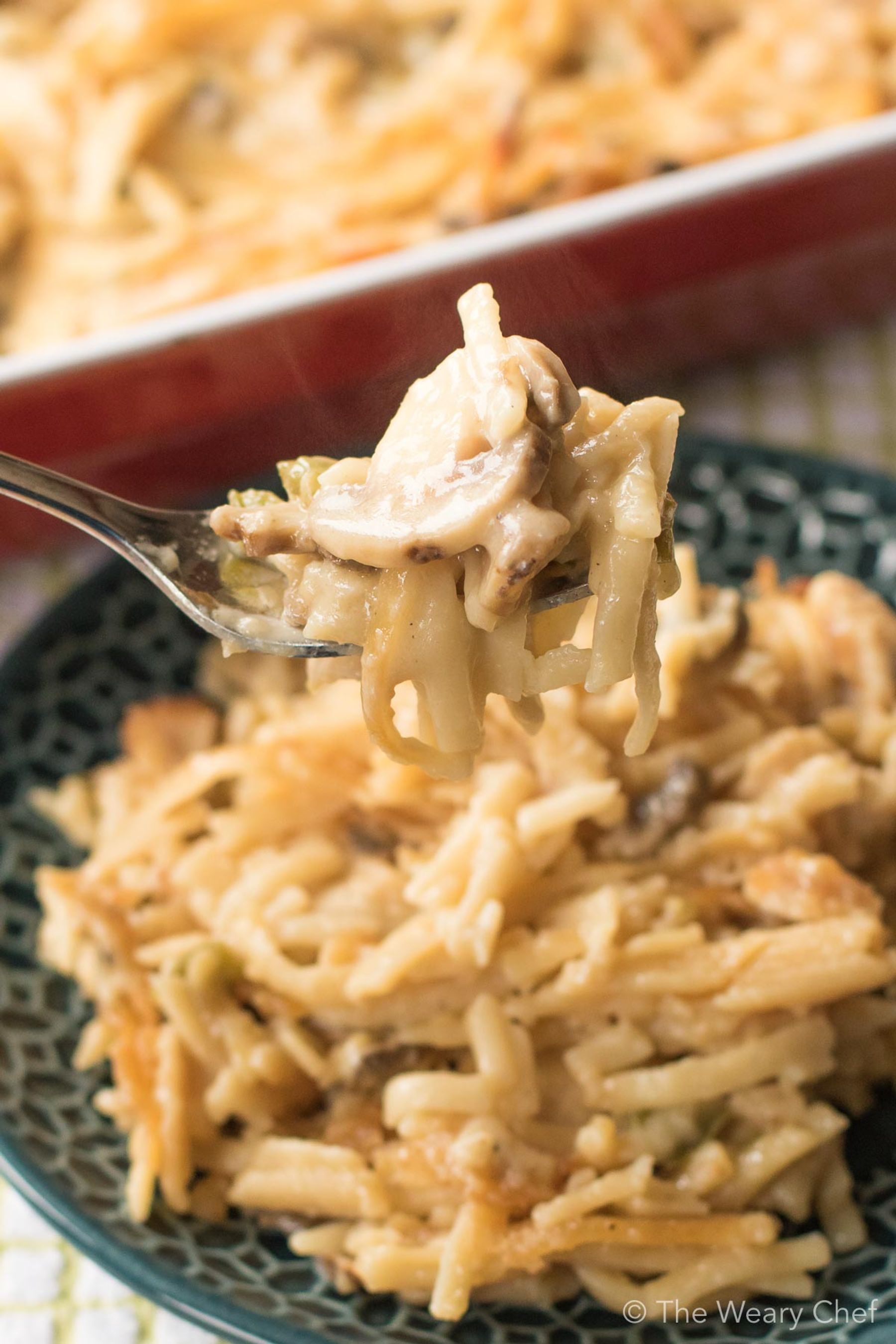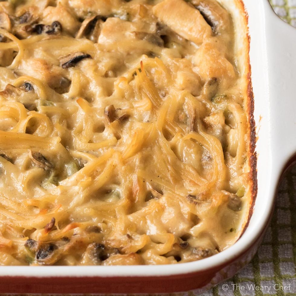 This Baked Chicken Tetrazzini is classic comfort food at its best. This recipe is sure to be a family favorite dinner at your house!