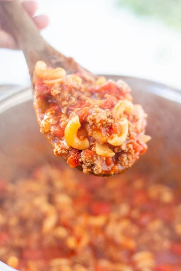 - Once cooked, add in garlic, V8 juice, diced tomatoes, elbow macaroni and seasoning salt. Bring to a...