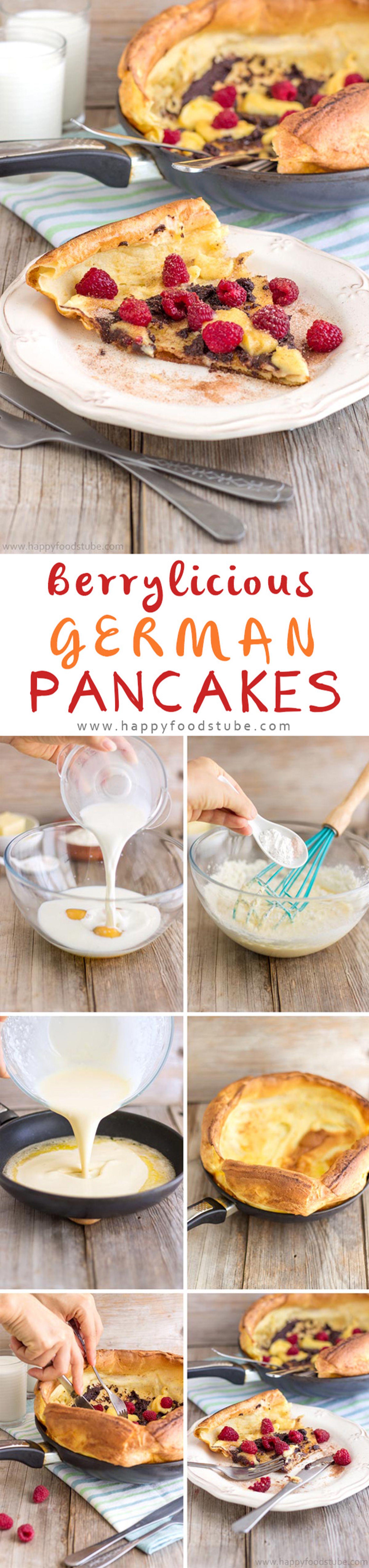 Berrylicious German Pancakes are the best pancakes you can get! Buttery, oven baked pancakes topped with raspberries, lemon curd & melted chocolate! Whether you make them for breakfast, brunch or as a dessert they will always be a hit at your table!