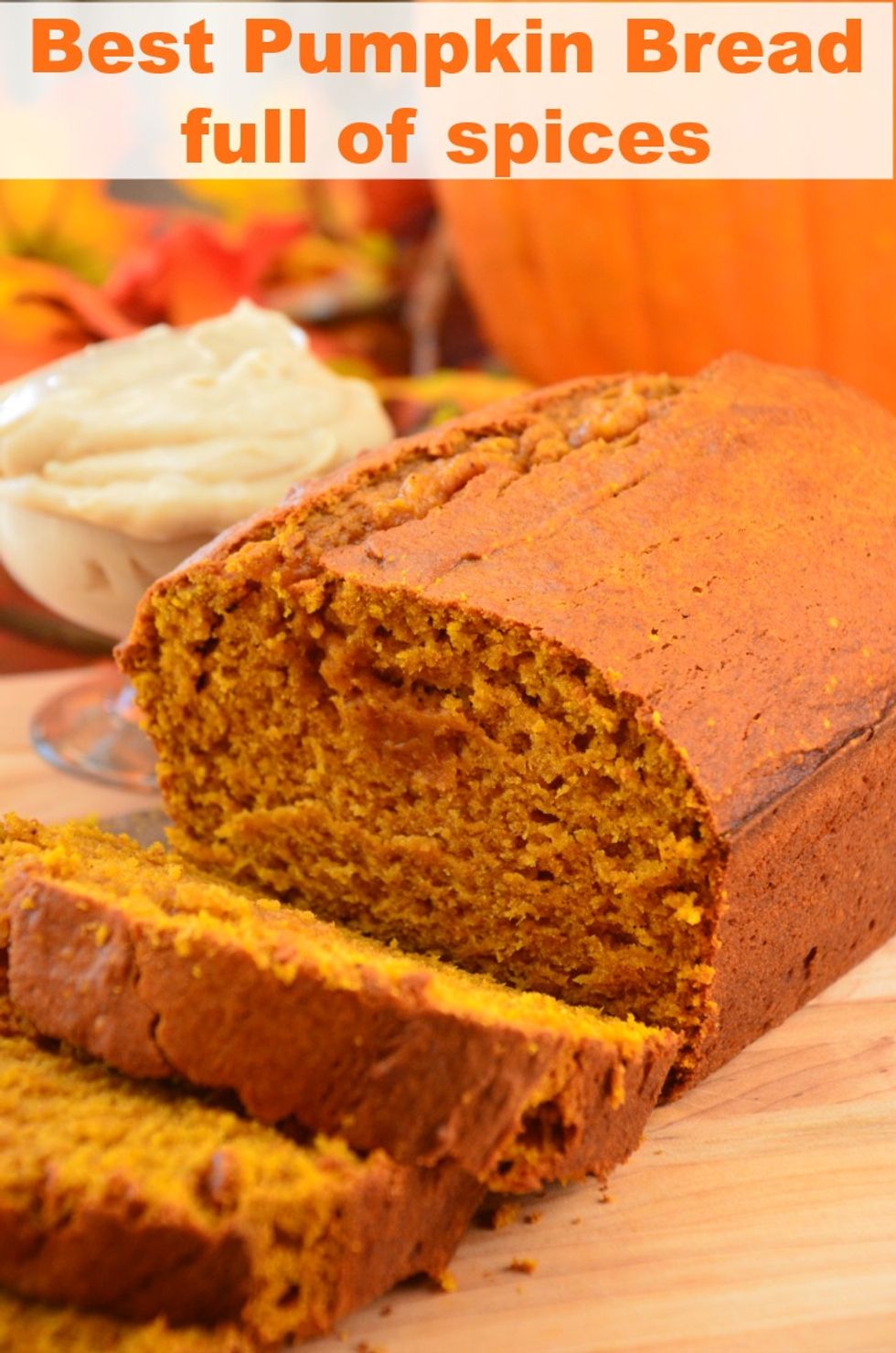 This Best Pumpkin Bread is super moist and full of fall spices including cinnamon, nutmeg, cloves and ginger. Celebrate fall with a perfect piece pumpkin bread.
