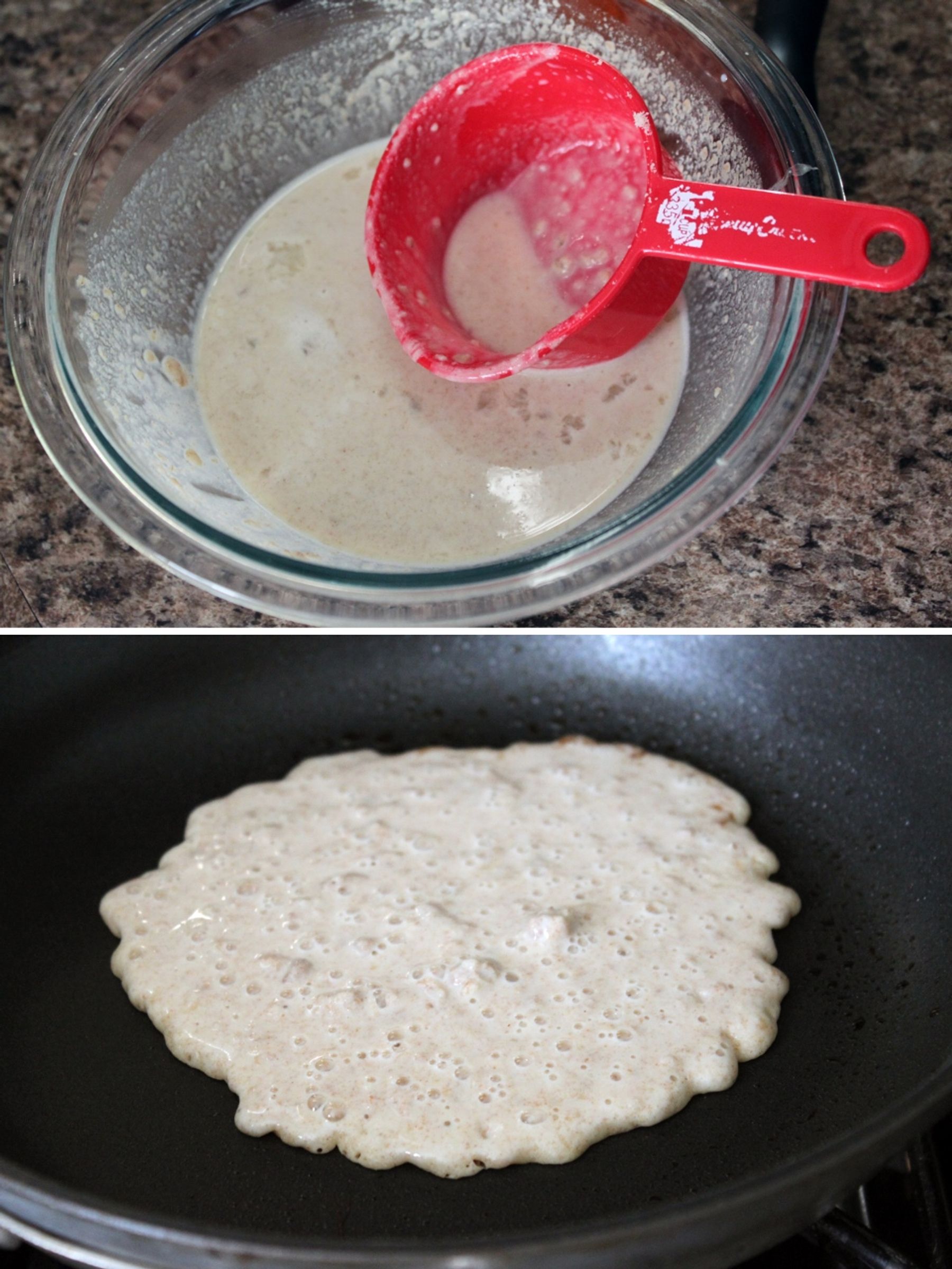 Combine all the dry ingredients. Drizzle in oil as needed until mixture forms a clump when you squeeze it by hand. To make pancakes, combine the pancake mix, milk & egg. Fry in a pan or griddle of medium...