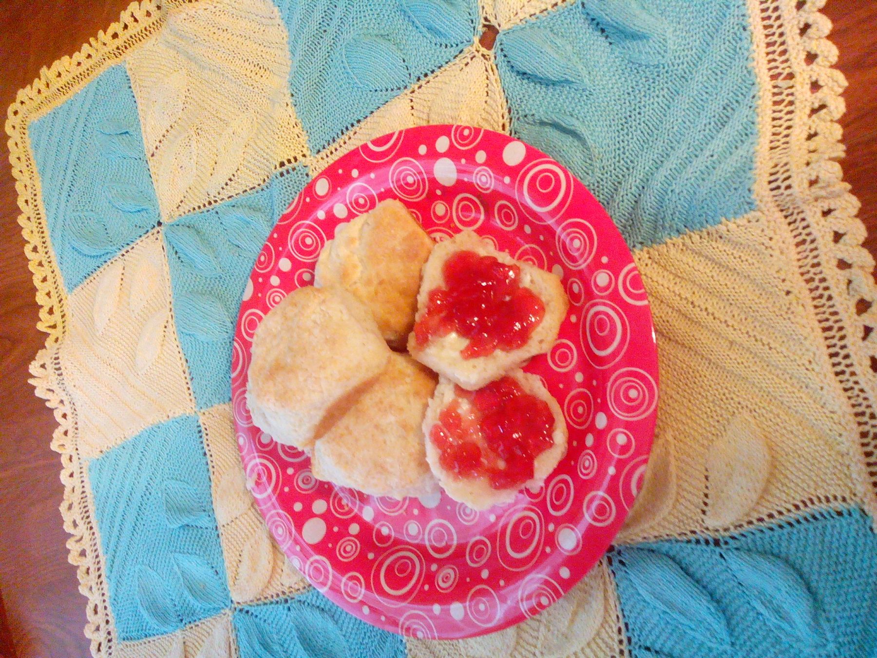 1/2 c.sour cream,2 c. Bisquick, 1/2 c. Club soda, 2 T. Sugar and 1/4 c. Butter