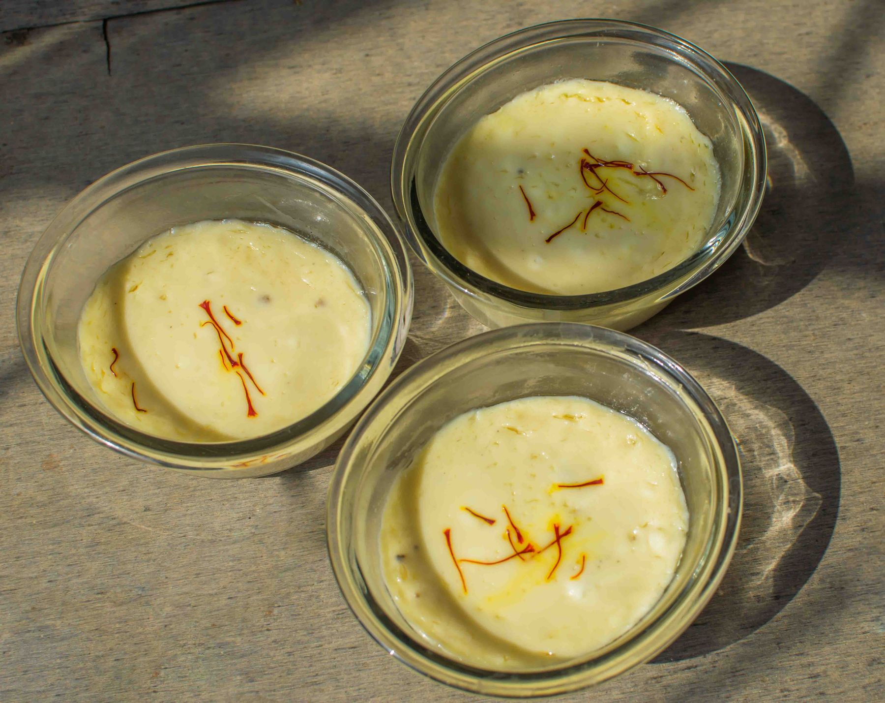 In a small bowl, take warm milk and add a pinch of saffron strands. Let it stand for 5 minutes. This saffron milk gives Bhapa Doi some healthy and flavourful touch.
