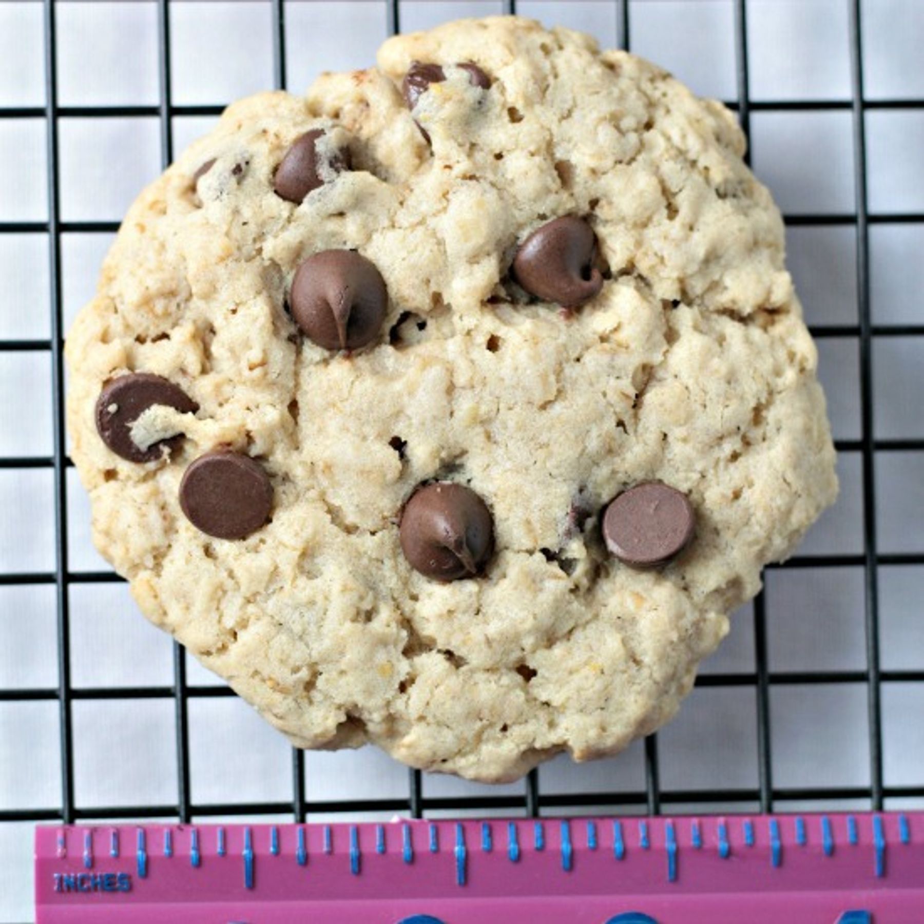 BIG Oatmeal Chocolate Chip Cookies are nearly 4 inches around! They are thick, yummy and stay together very well when you pick them up.