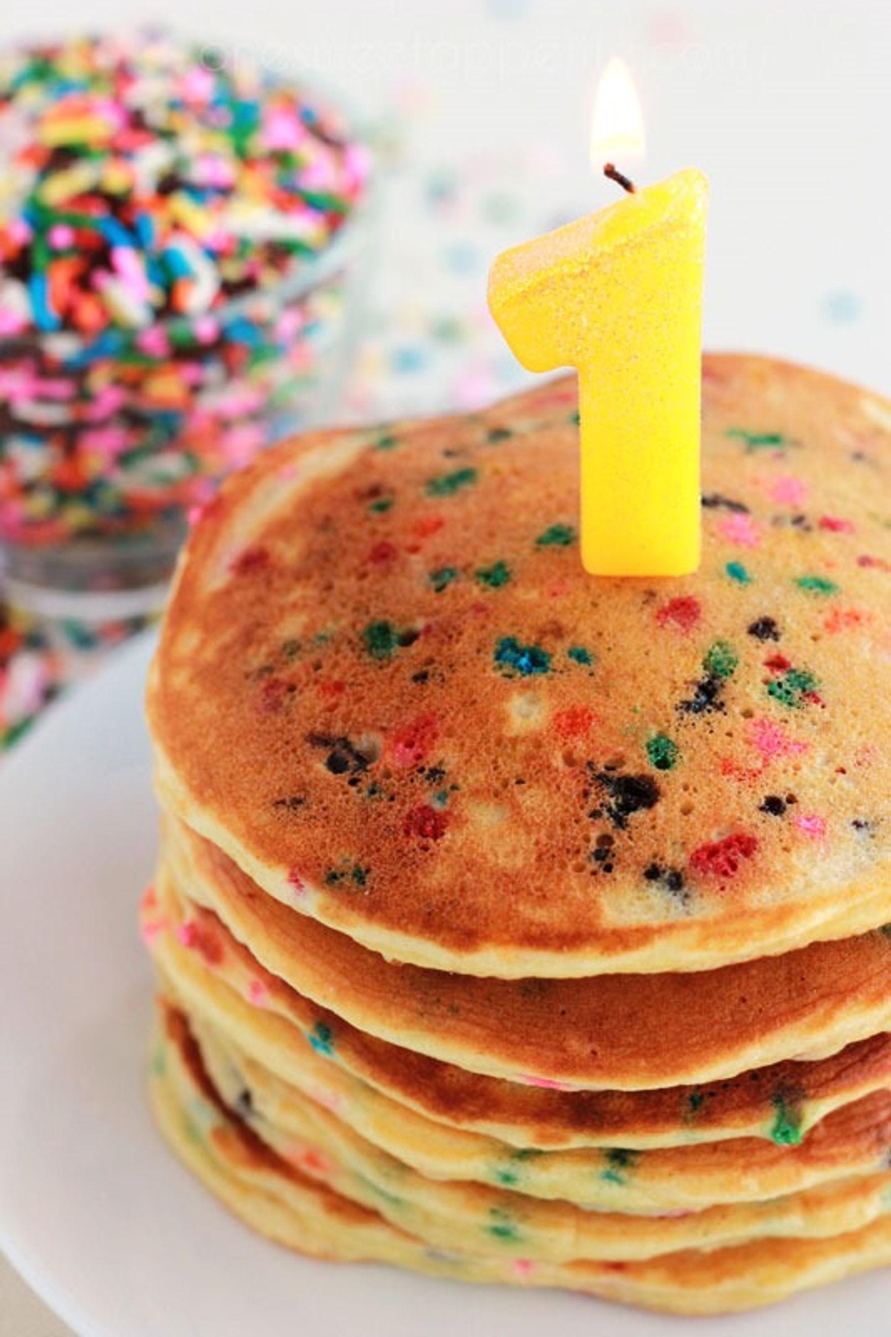 Whisk together the pancake mix, yellow cake mix, milk, eggs, and both extracts until batter is smooth. Set aside.