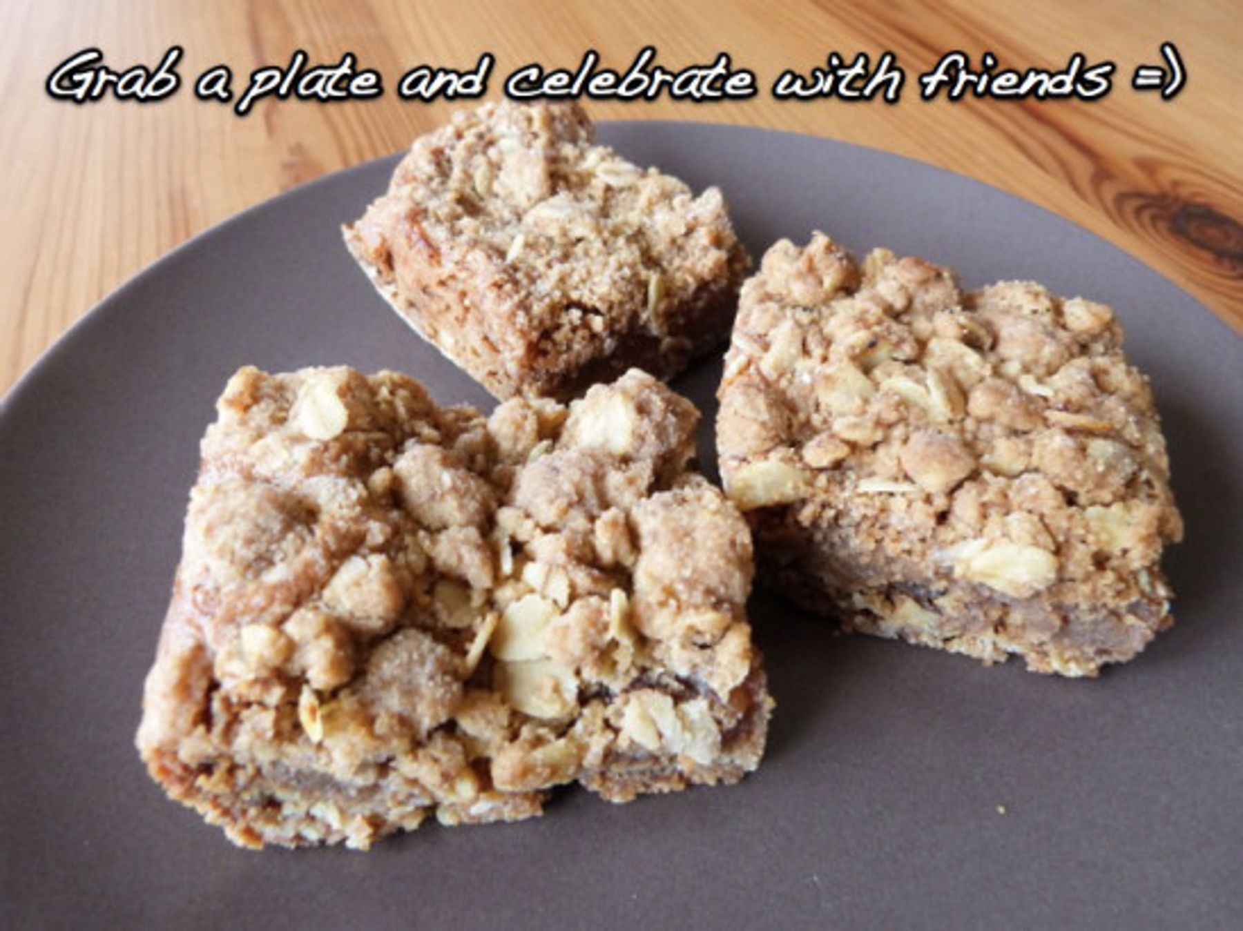 Pour on top of partially baked oatmeal bar. (Here’s where you would add the white chocolate chips if you so fancied.) Add remaining oatmeal mixture. Bake for 20-25 minutes until golden.