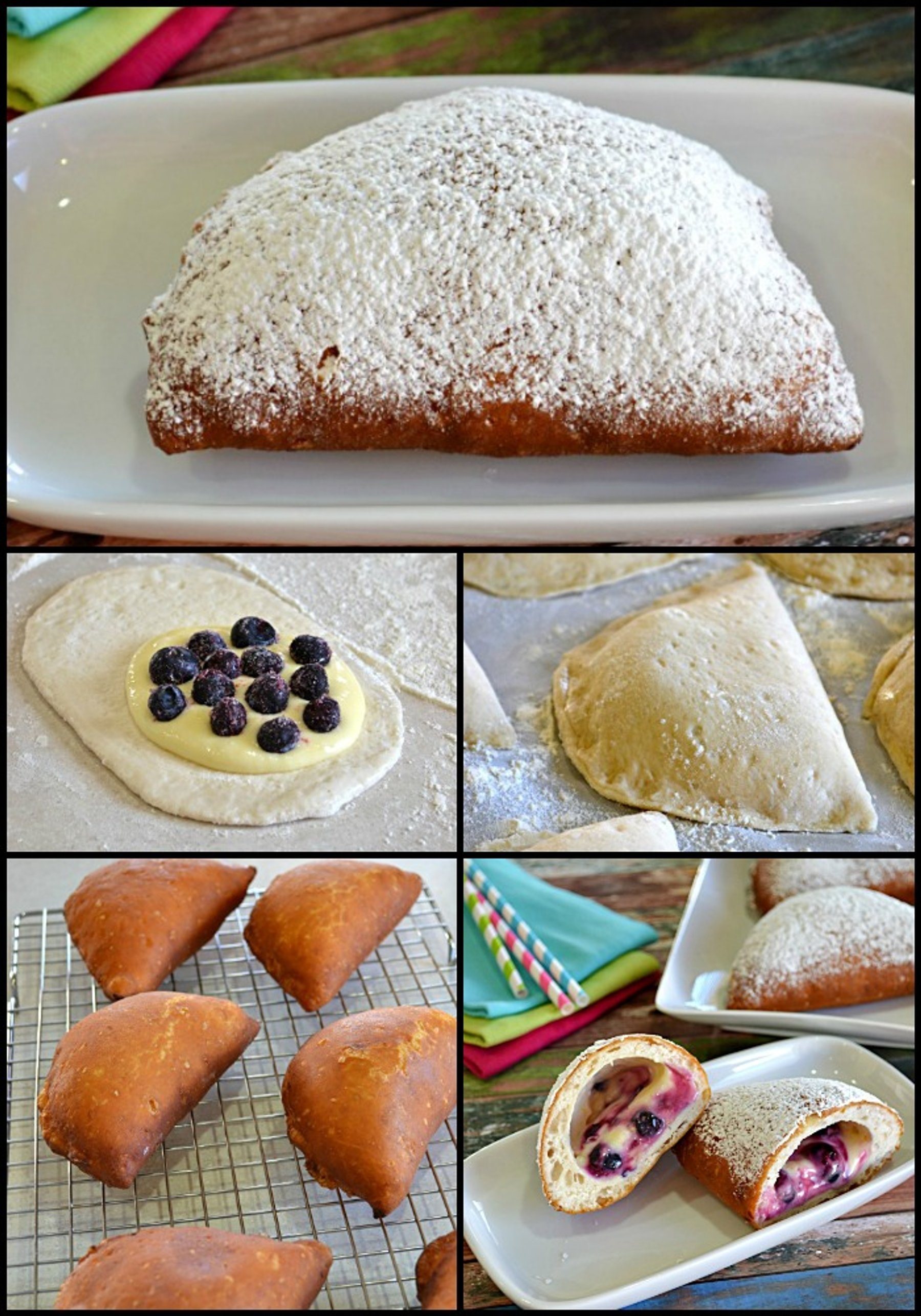 All over your face, better be leaning over something kind of goodness. These Biscuit Beignets filled with Lemon Cream and Blueberries are to die for!