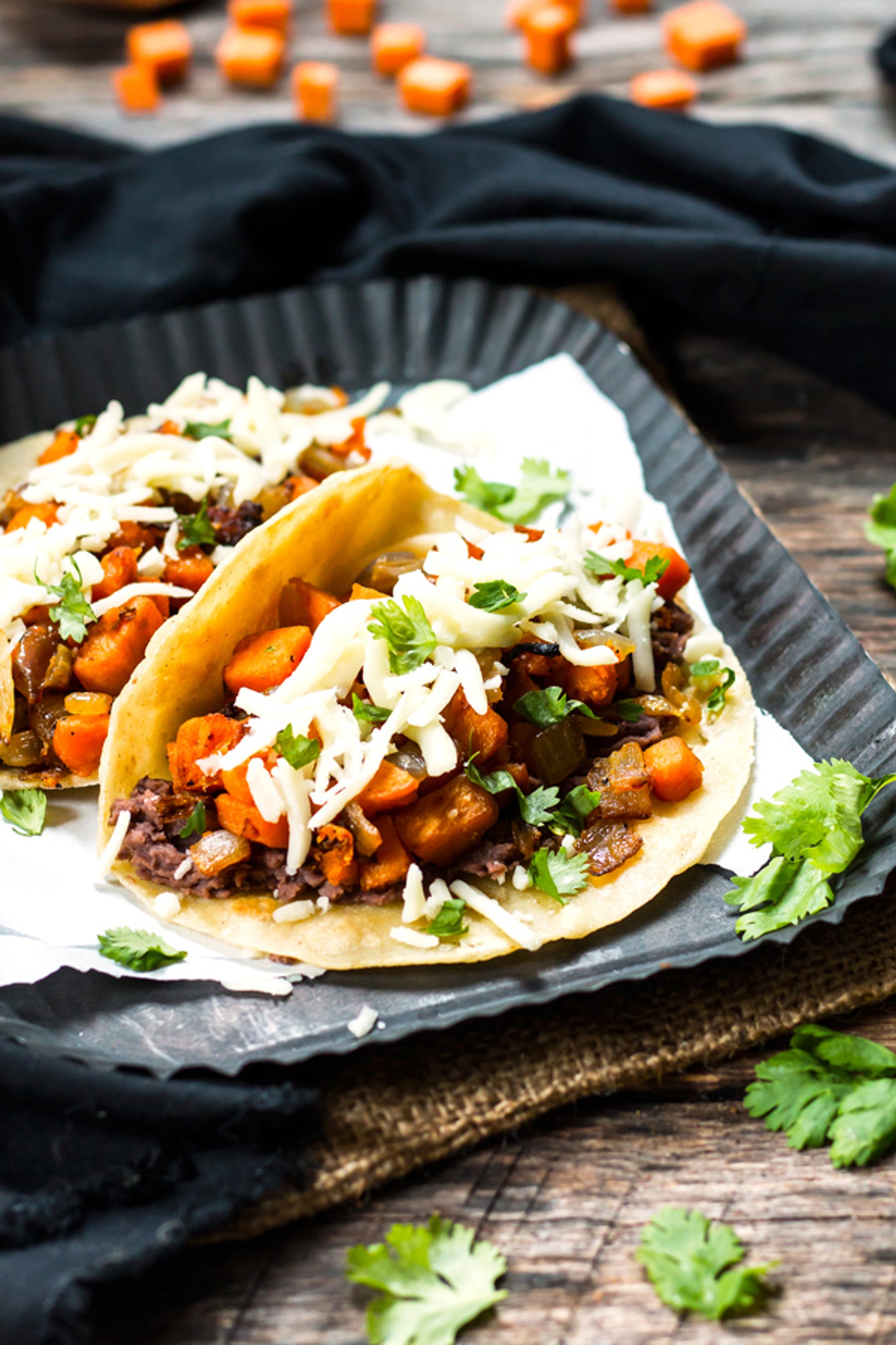 These Black Bean & Sweet Potato Tacos are gluten free and vegetarian. They make a great breakfast, lunch or dinner taco recipe.