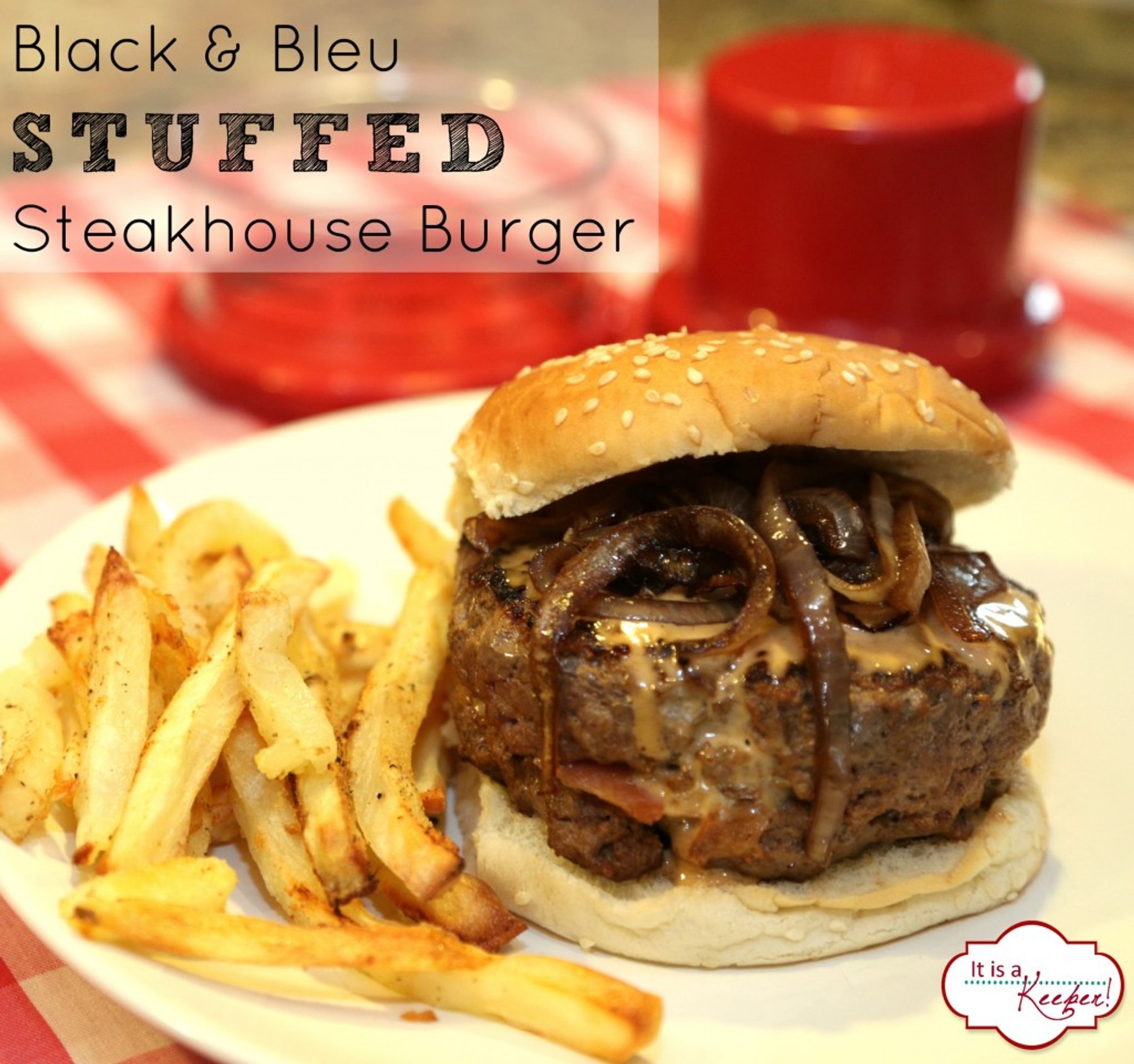 A big, thick, juicy burger stuffed with Gorgonzola cheese and bacon and topped with a special steakhouse sauce and balsamic glazed onions.