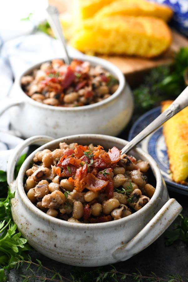 This easy Black Eyed Peas recipe simmers with bacon, garlic, onion and herbs for a savory, smoky dish that's full of flavor. Serve the black eyed peas with cornbread for a cozy, budget-friendly lunch or dinner, or offer them as a side dish on your lucky New Year's table!