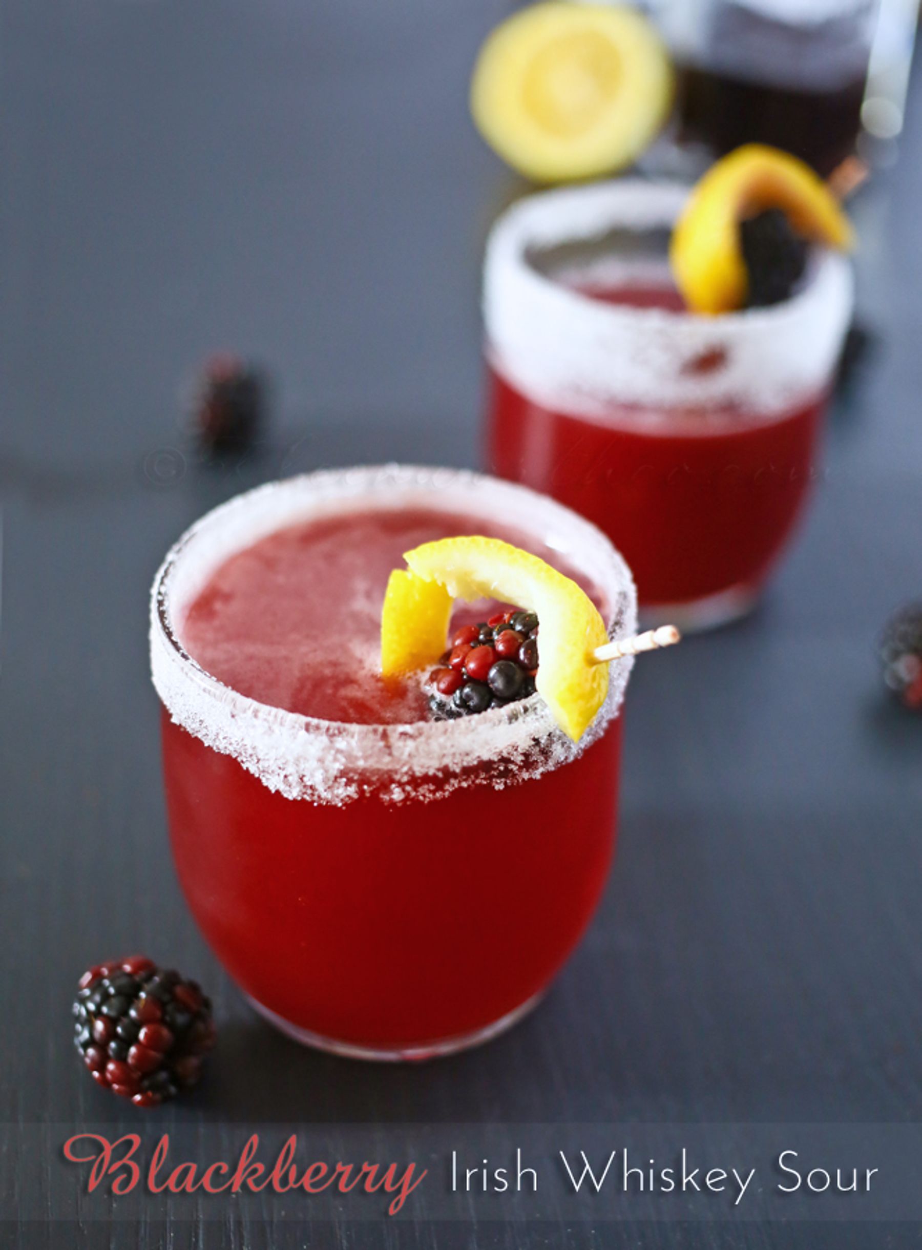 Twisting on the traditional Whiskey Sour for St. Patrick's Day - adding blackberry brandy & sugared rim.