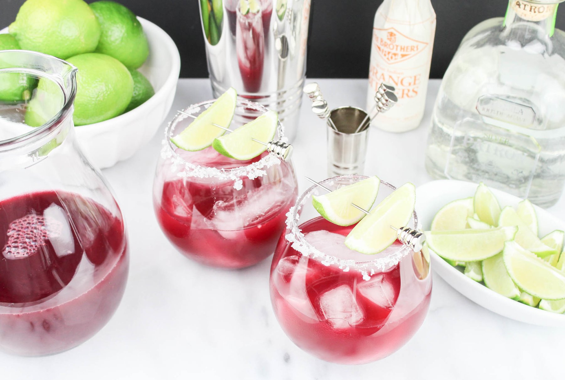 A delicious, fresh twist on a typical margarita with fresh blood orange juice.