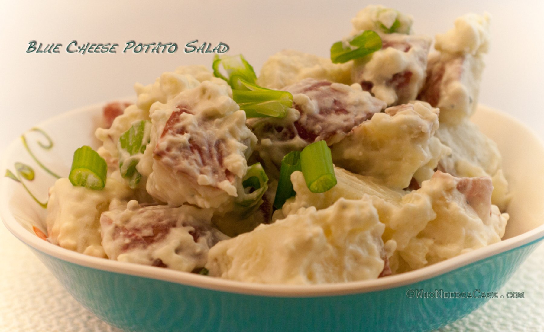 I love love love Blue Cheese Potato Salad. It is one of my favorite sides to serve. I consider this a sophisticated potato salad because not every palate can handle the bite of vinegar with creamy blue cheese. We usually serve this without bacon crumbles, but if you really want to indulge add about 6-8 pieces of crumbled applewood smoked bacon.