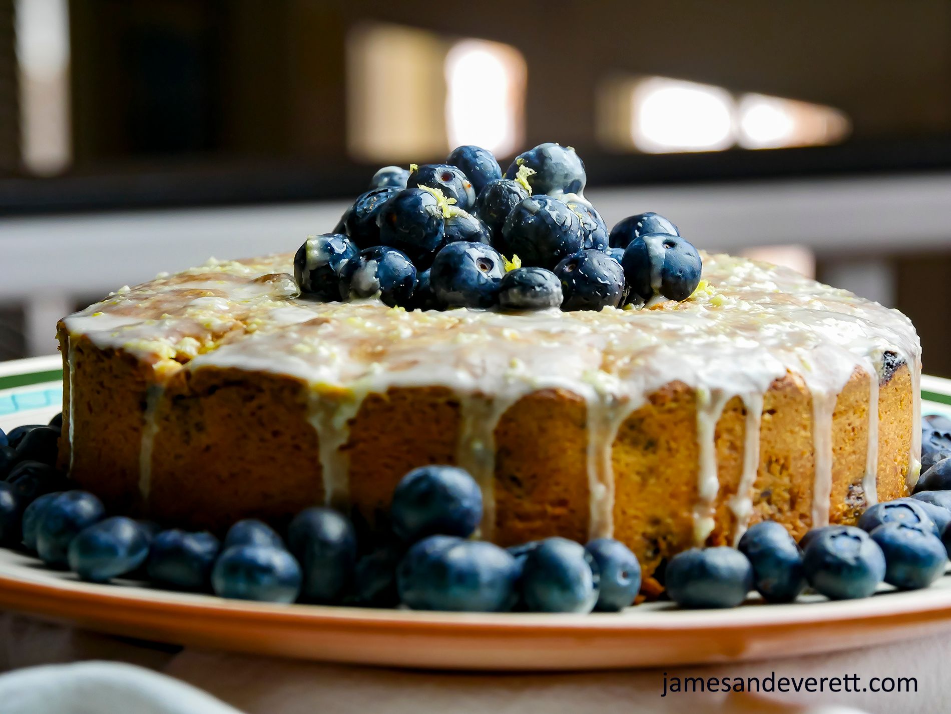 Naturally sweet blueberries are tossed with lemon zest and baked with almond flour to make this incredibly tender cake. Covered in an almond glaze and topped with a mountain of plump berries this cake is bursting with fresh flavors.