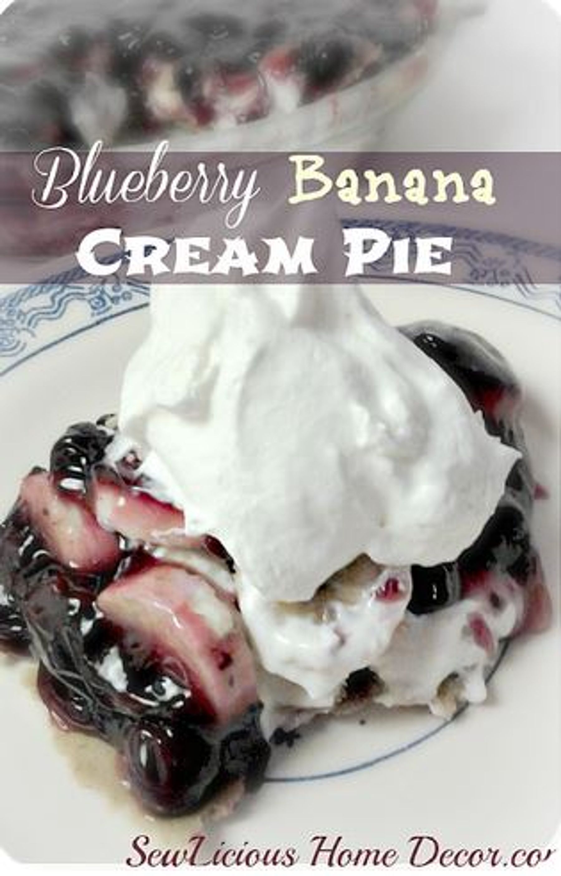 Get the full recipe here...http://sewlicioushomedecor.com/blueberry-banana-cream-pie-desserts/