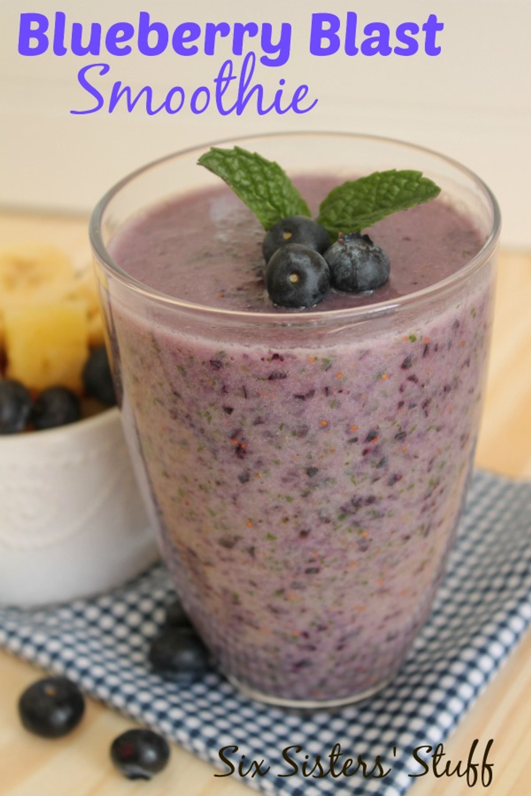 In a blender mix the orange juice and spinach leaves til well blended. Then add in blueberries, sliced banana, pineapple, yogurt, ice cubes, lemon juice, and chopped mint leaves. Blend until smooth, about 1...