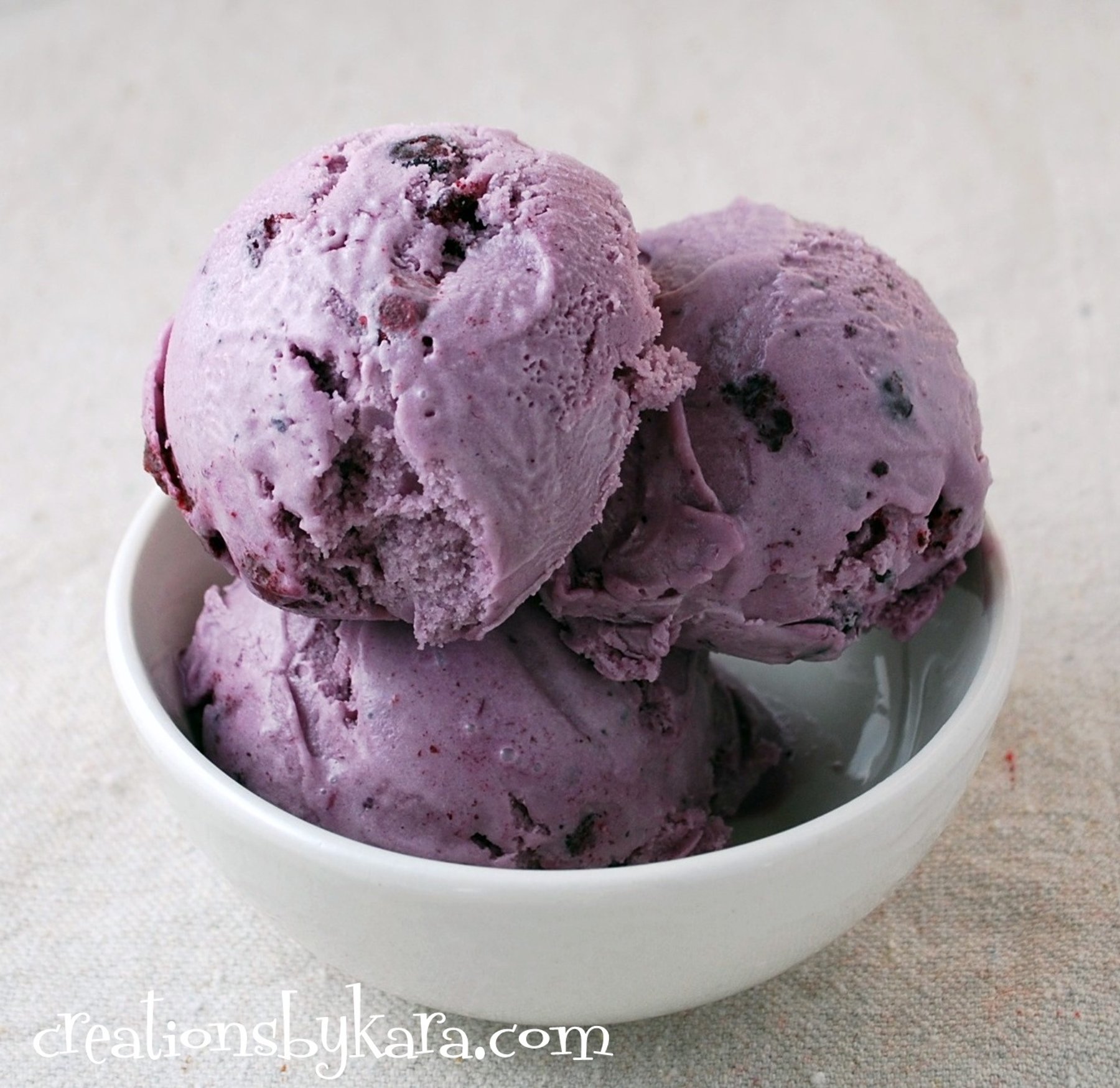 Rich and creamy ice cream with cream cheese and blueberries. Yum!