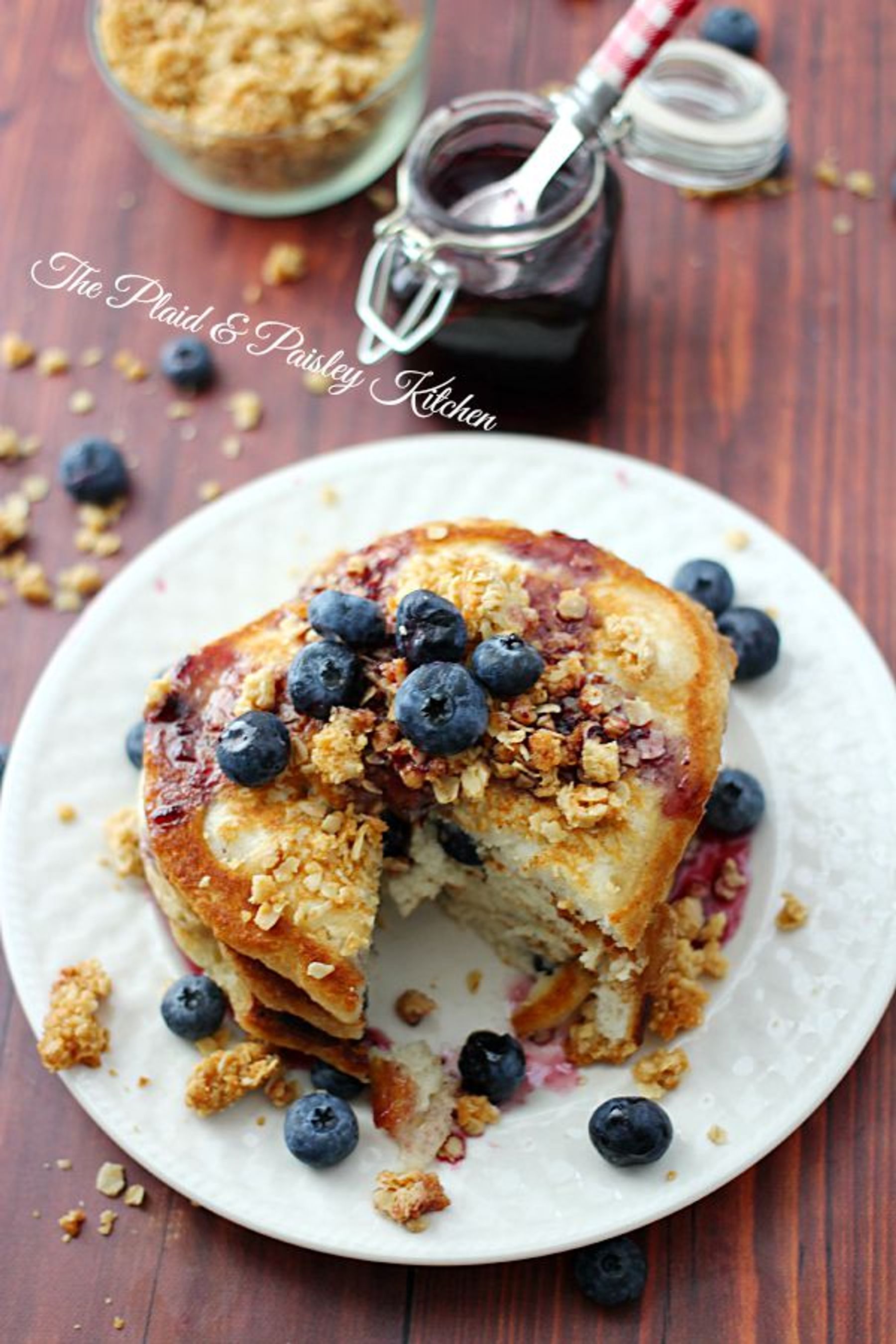 Blueberry Granola Pancakes are just as easy to make as plain. So why on earth would you want to eat plain when you can have juicy blueberries and crunchy granola?!