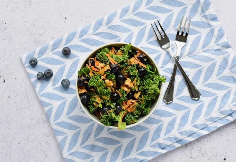A perfect combination of fruits, veggies, and nuts this light Blueberry Kale Salad is great side dish or a meal on it's own!