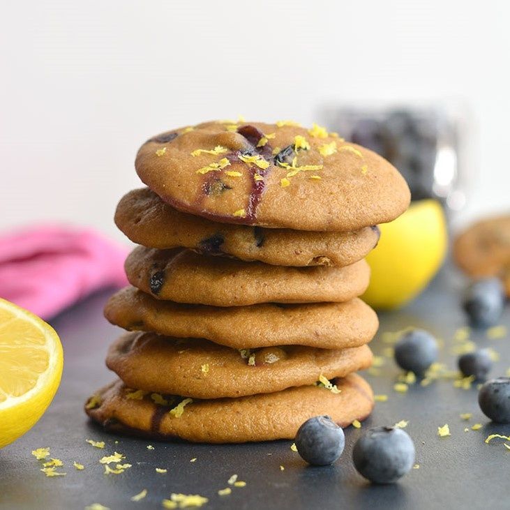 Blueberry Lemon Yogurt Breakfast Cookies! Bursting with blueberries and infused with lemon flavor, these creamy oat cookies make a great breakfast treat or anytime snack. Lower in carbs and only 67 calories each. Gluten Free + Low Calorie