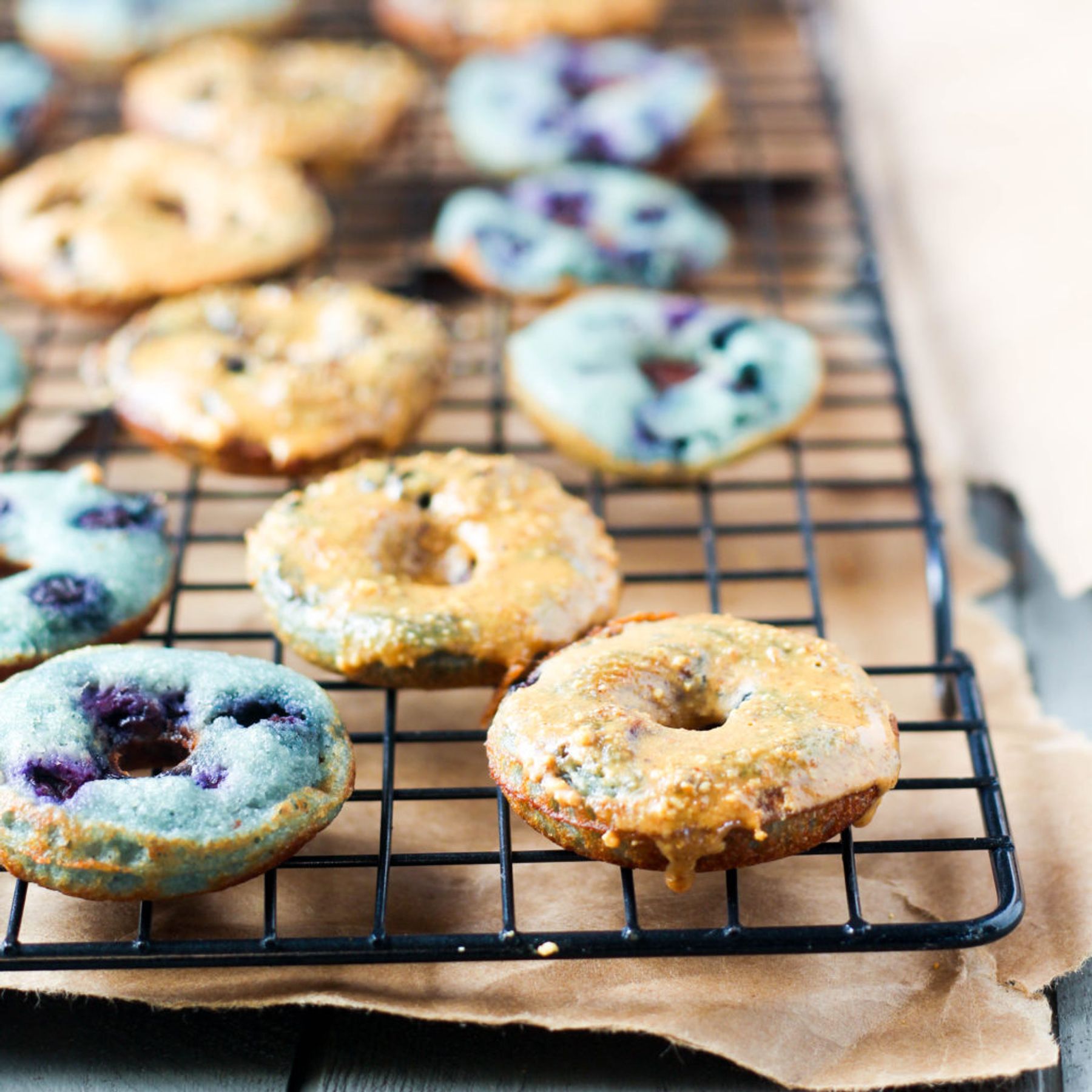 Wild Blueberry Mini Donuts are a sweet treat bursting with fresh blueberry flavored and covered with a sweet peanut butter glaze. Made from almond flour they are a healthier better for you treat to indulge in!