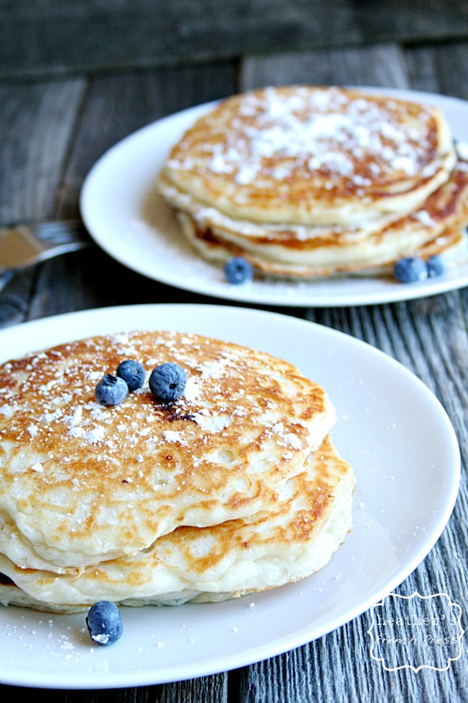 Light and fluffy "buttermilk" blueberry pancakes made using Greek yogurt