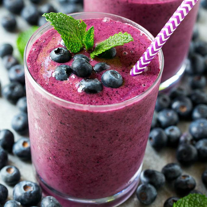 This creamy and refreshing blueberry smoothie is made with juice, yogurt, frozen blueberries and banana, all blended together into a frosty drink. An easy and delicious way to start off your day!