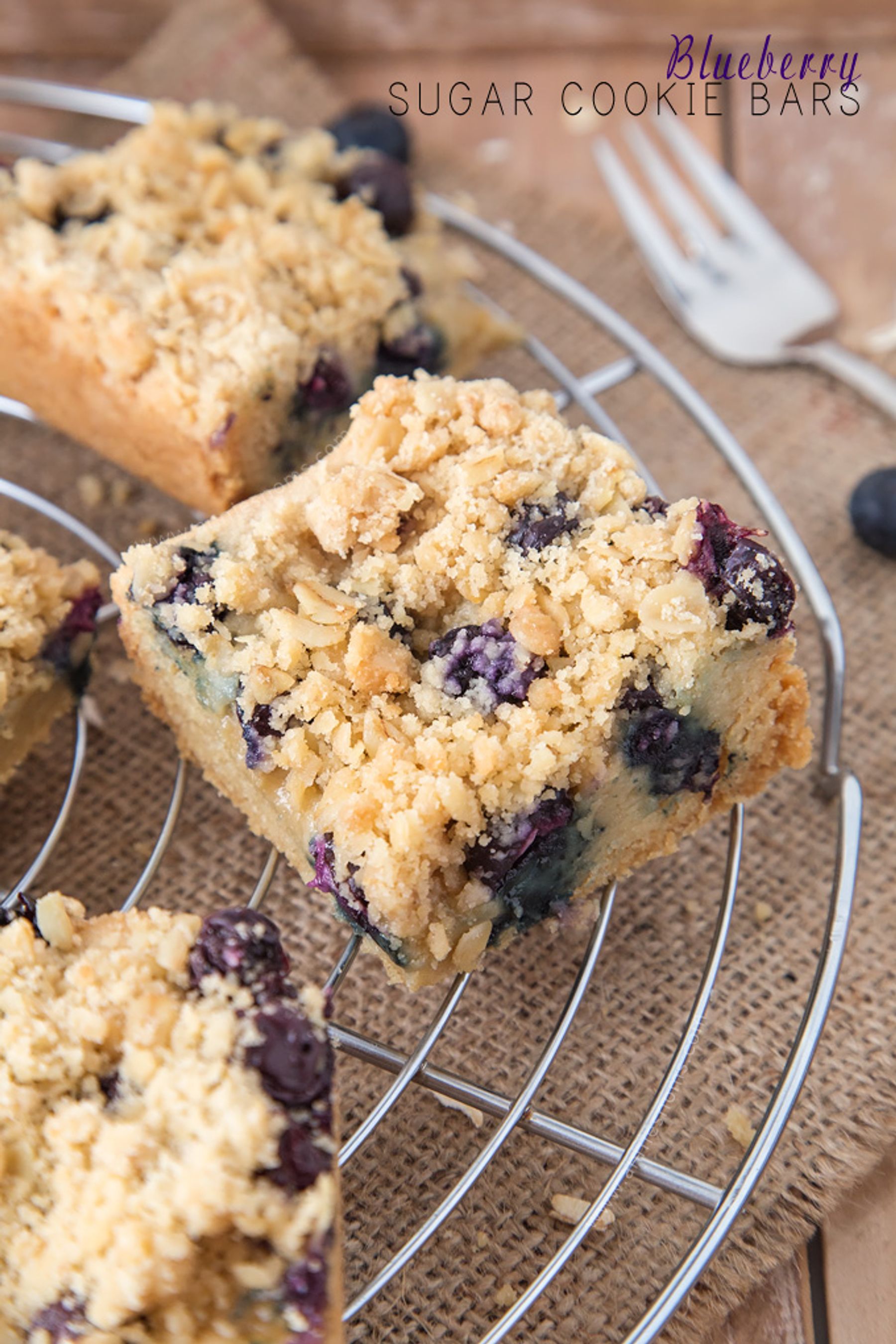 My Blueberry Sugar Cookie Bars are a combination of soft, chewy cookie, fresh blueberries and a crumbly, oat topping.