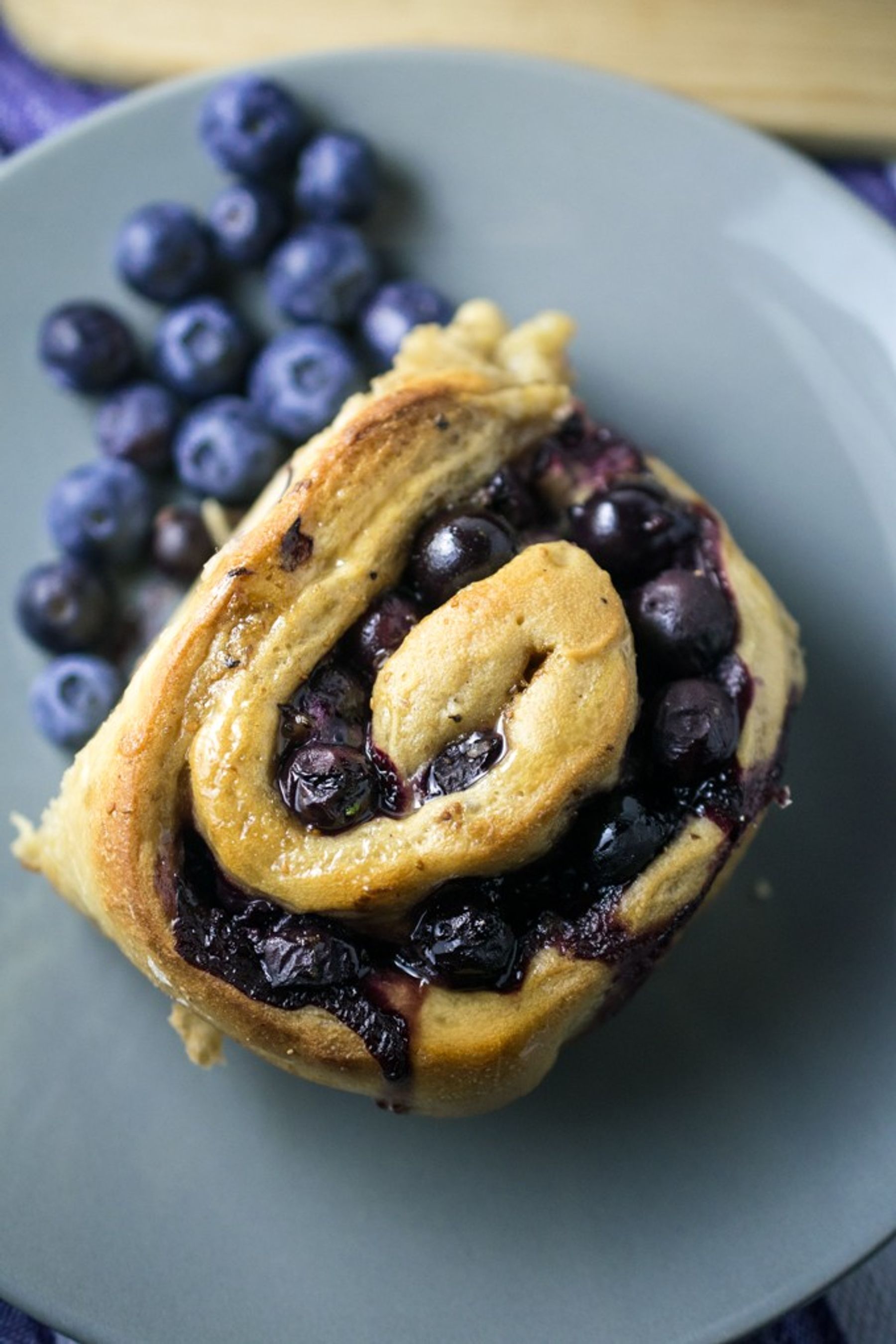 Summery vegan blueberry sweet rolls, with a hint of orange. Made with FRESH blueberries! Use your favorite glaze or icing to top these off.