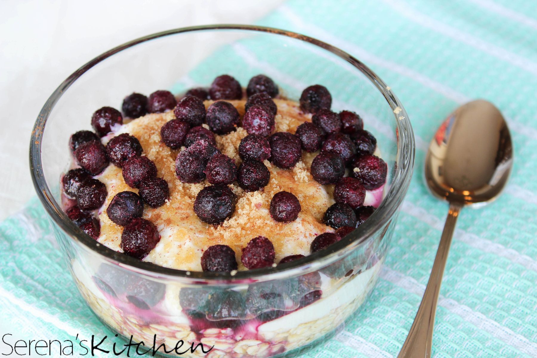 My favourite quick, easy, healthy, AND delicious breakfast. Great for those rushed mornings where you still want to eat a good breakfast. Throw it together the night before, and grab it on your way out the door. Soft, thick oatmeal (kept soft with Vanilla Greek Yogurt!) loaded with brown sugar, cinnamon, and blueberries (or other berries of your choice!). Leave those pop tarts at home and grab some Overnight Oats to go!