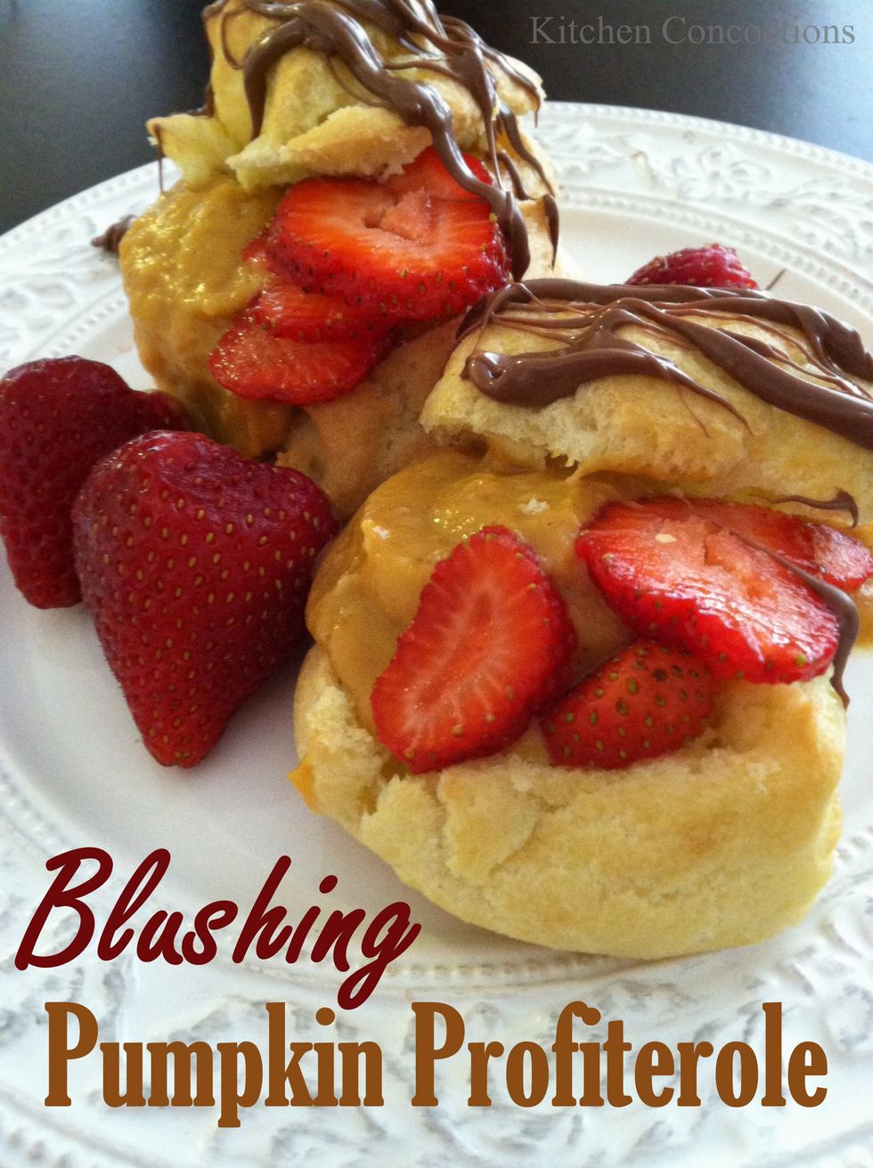About 2 years ago I discovered the wonders of strawberries mixed with pumpkin pie. The combination was great as a crepe topping, and I thought I could make a cream puff out of it too! It worked, so here is my finished product! They are reminiscent of autumn with a nice twist. :)