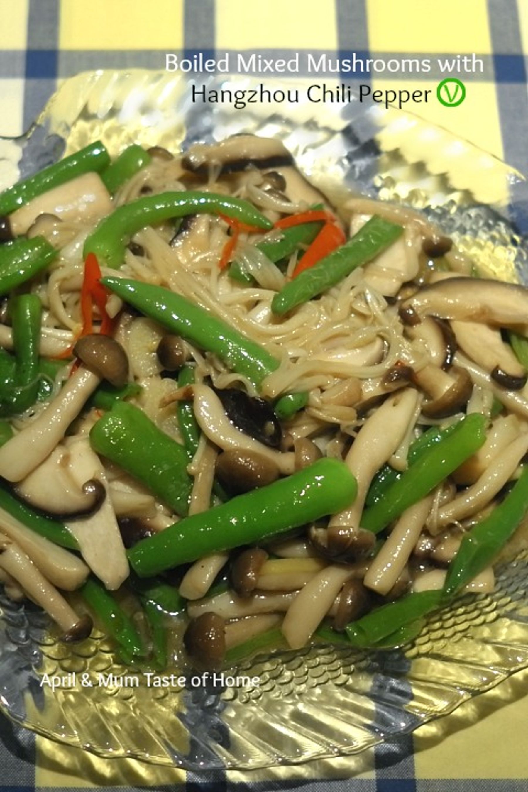 Boiled Mixed Mushrooms with Hangzhou Chili Pepper
