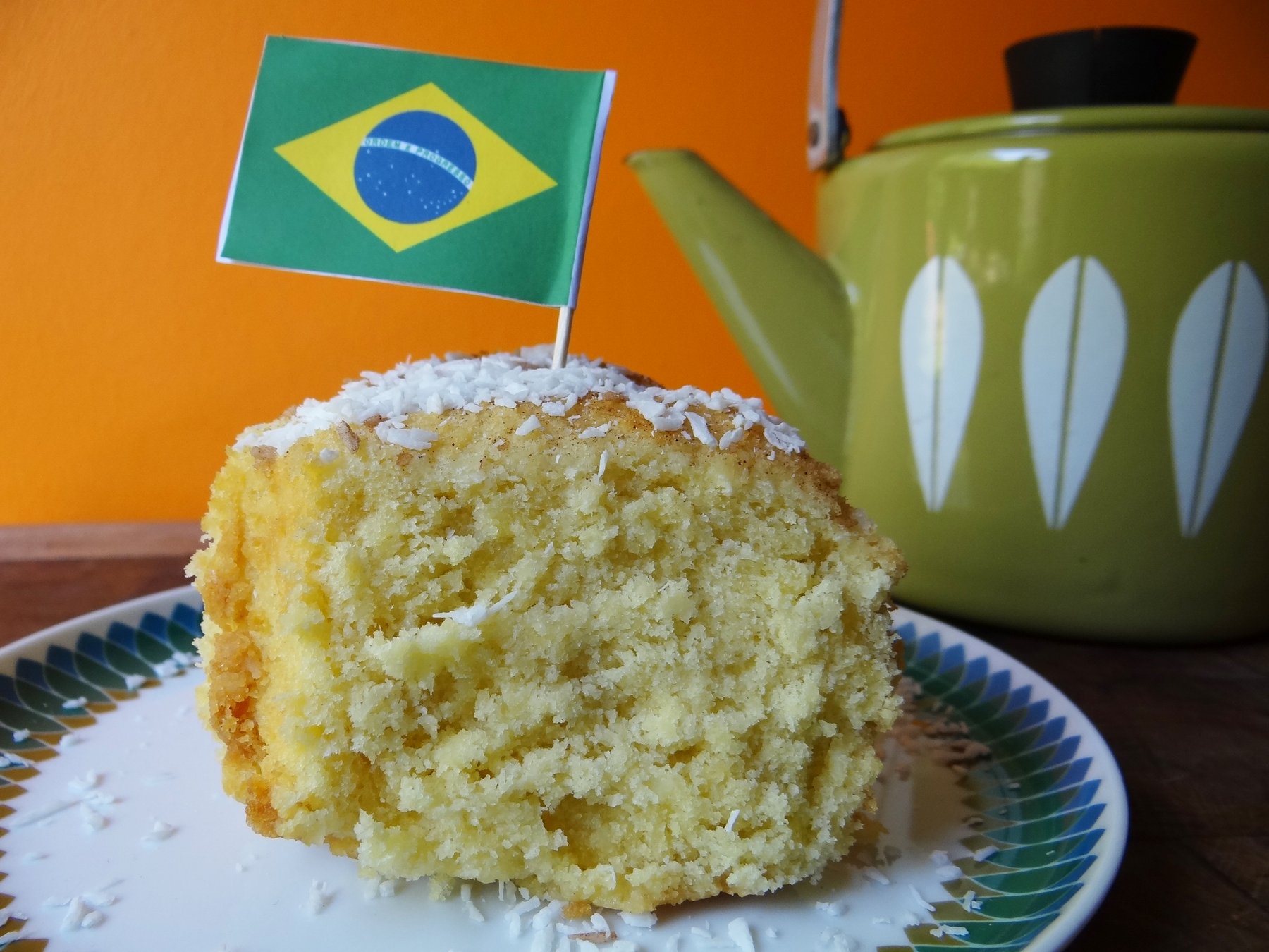 Bolo de fubá com coco or cornmeal cake with coconut is a popular Brazilian cake.