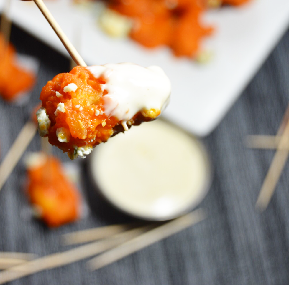 Mess free, boneless buffalo chicken bites. Perfect with fries or as a football party appetizer!