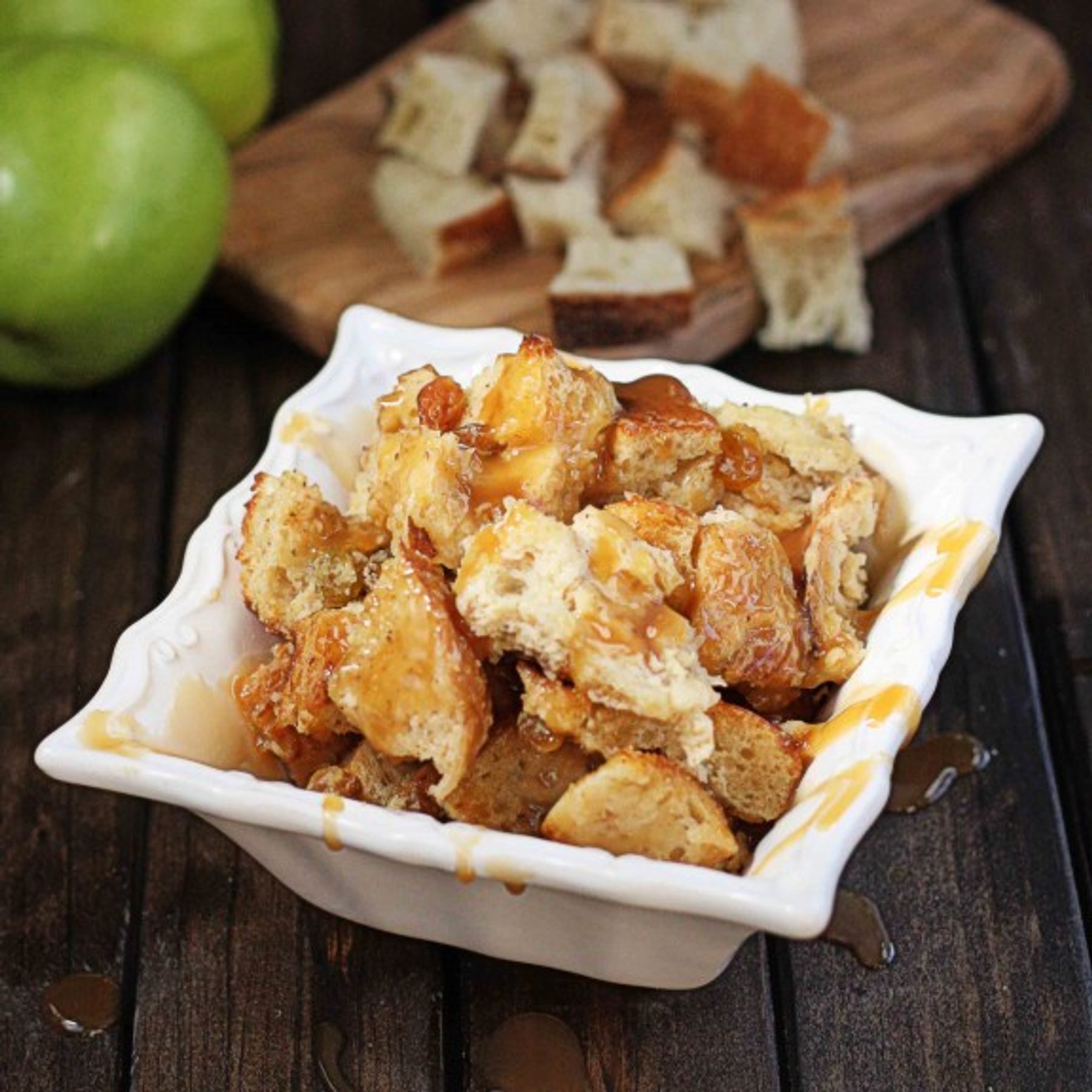 Make the bread pudding. In a large bowl, combine all ingredients except bread. Stir in bread and soak until bread is softened. Pour bread mixture in...