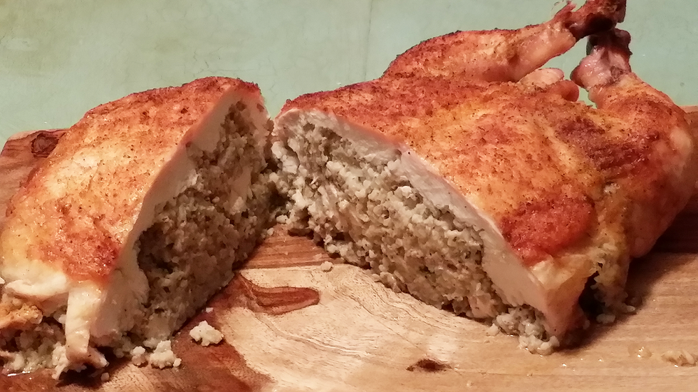 Wonderfully grilled boneless whole chicken stuffed with spicy boudin for an amazing cajun flavor.