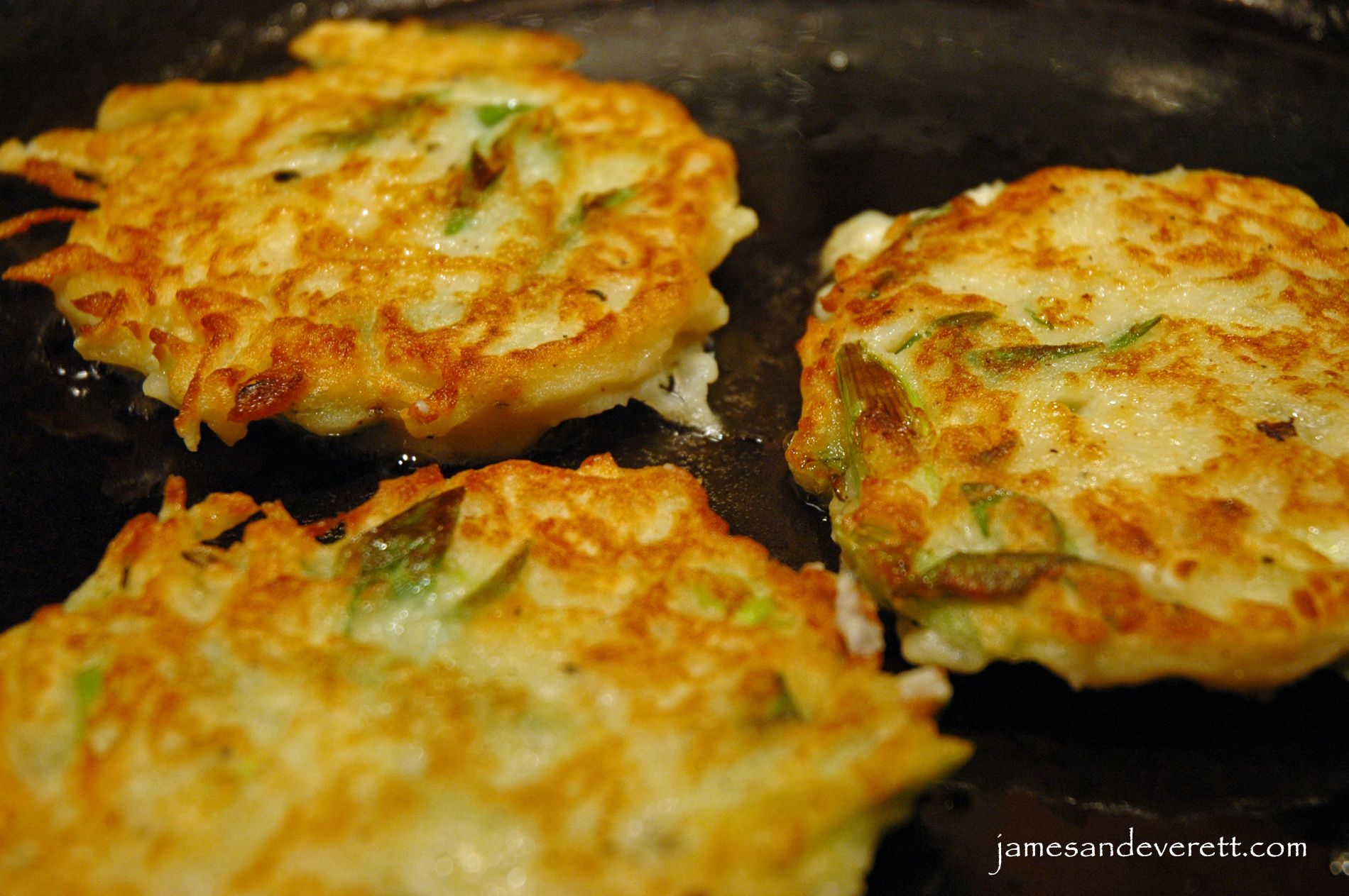 - Toss the flour and baking powder with the shredded raw potatoes and scallion. Mix in the mashed potatoes.