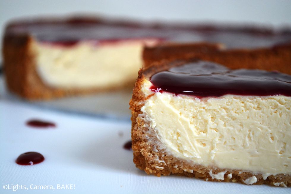 This boysenberry cheesecake is a rich, creamy and melt-in-the-mouth vanilla cheesecake topped with a homemade boysenberry compote. This is sure to impress anyone you serve it to.