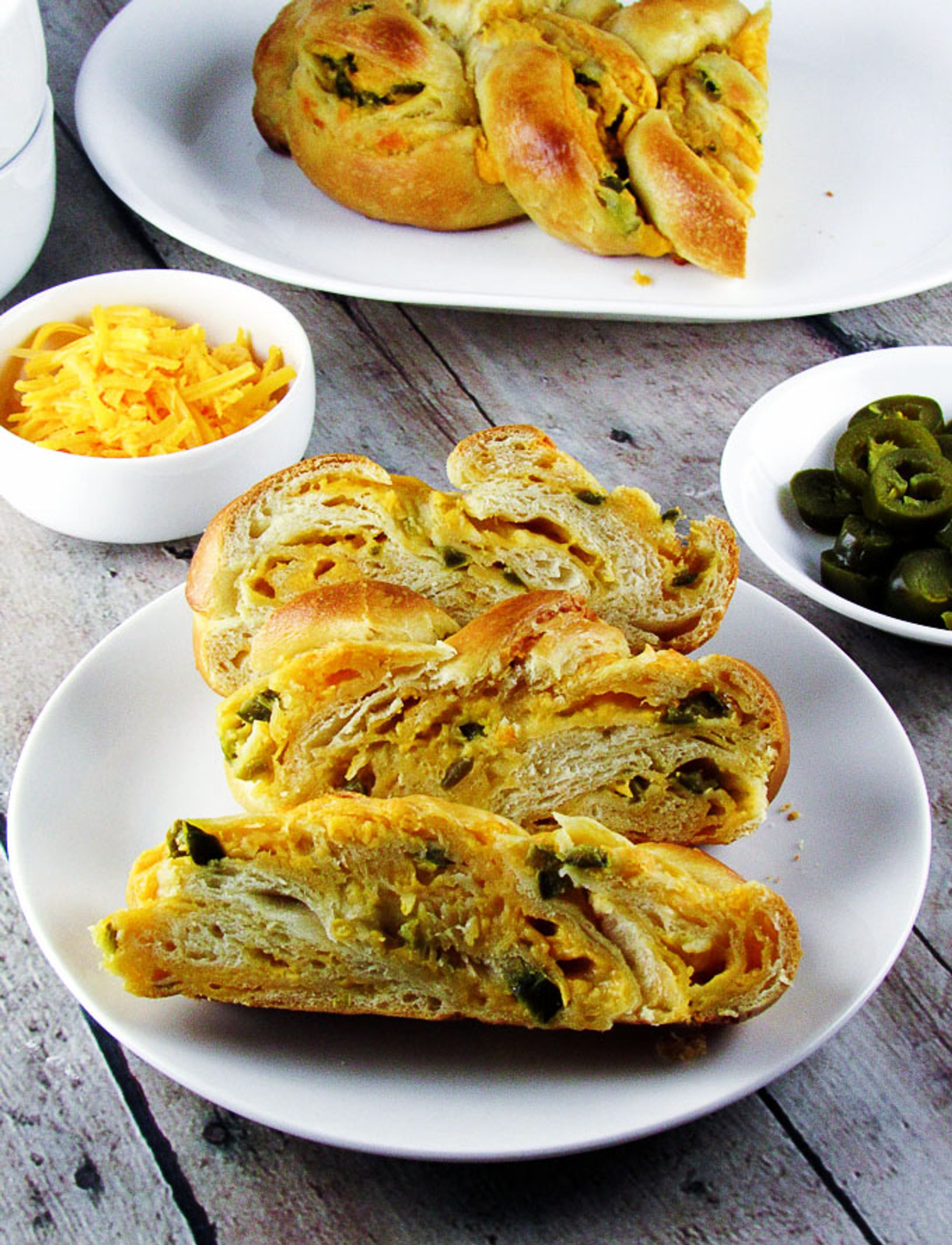 Braided Jalapeno Cheddar Bread is a soft and flavorful bread with sharp cheddar cheese, and spicy jalapenos weaved throughout.