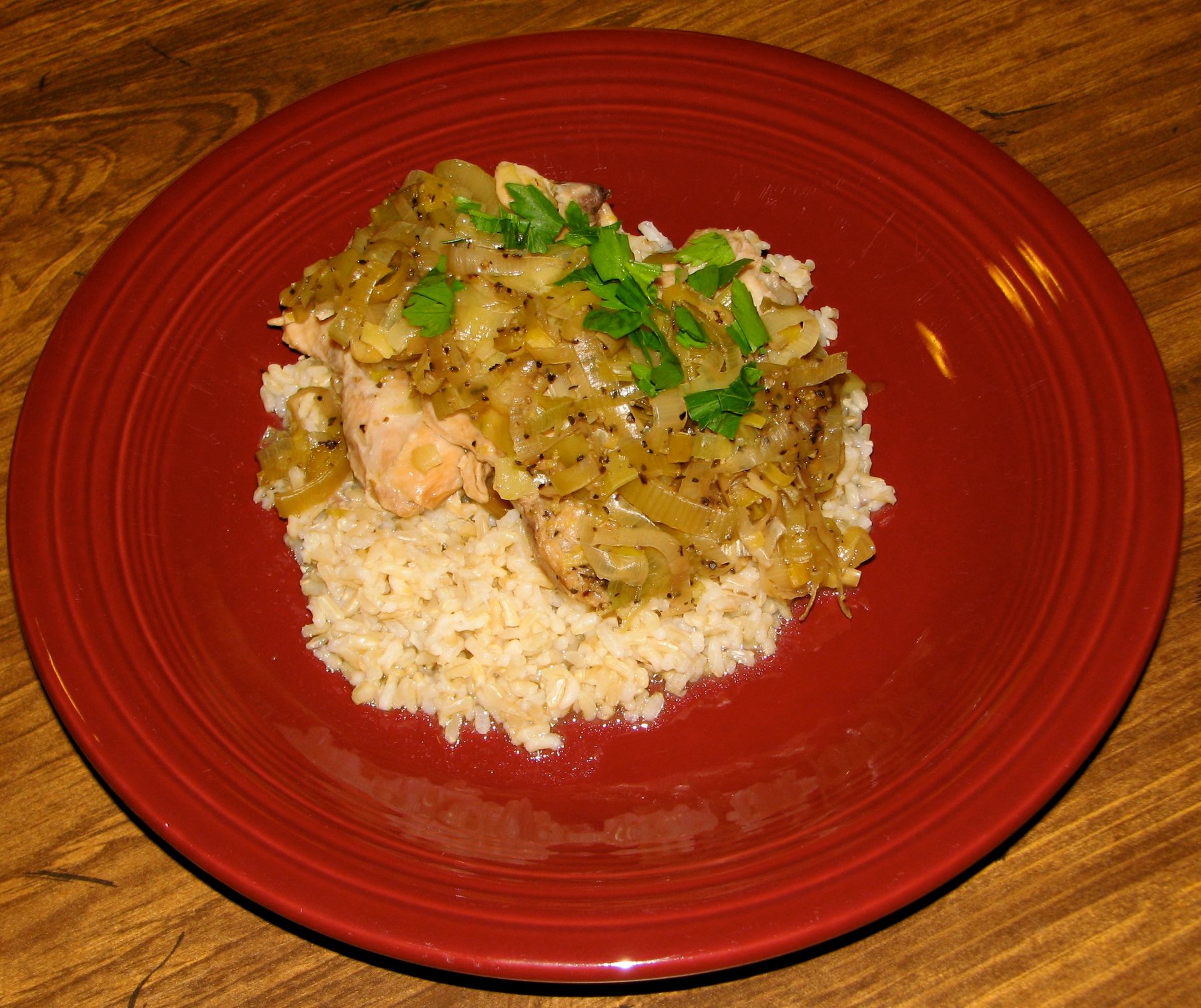 I haven't posted a crock pot recipe all week! What is wrong with me?! Here's a new one for you that is out of the ordinary and chock full of flavor. Chicken thighs cooked with leeks, sweet honey and tangy lemon juice! Plus, only 7 ingredients INCLUDING salt and pepper! Serve over rice or noodles and enjoy!