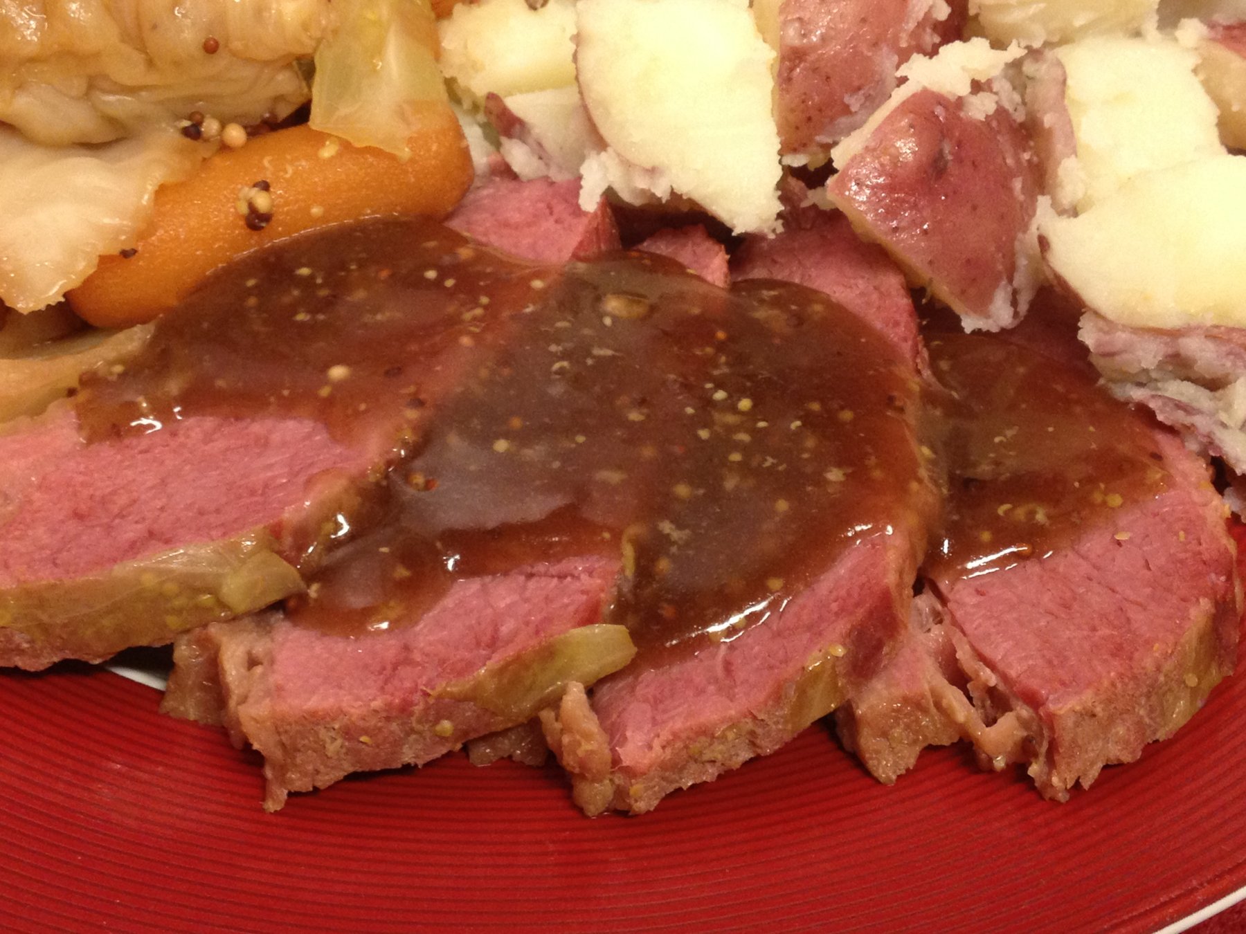 Braised Corned Beef and Cabbage with Stout Mustard Glaze