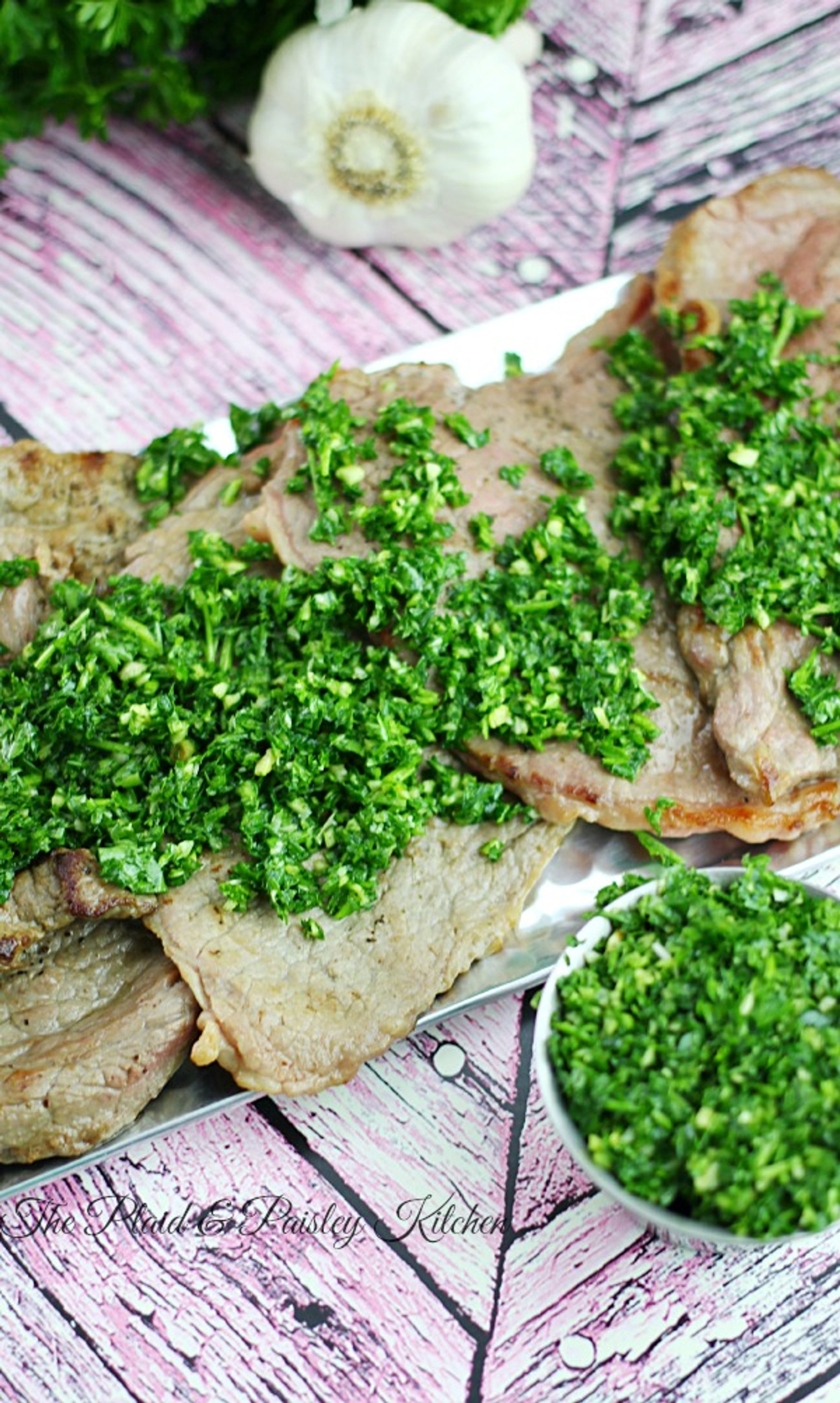 Grilling season is here! I love the smell of charcoal. Are you ready for long days in the sun and hanging out with friends and family? I know that I am! Chimichurri is a great topping to flank and skirt steaks. You can use it with anything really. It’s light fresh and full of flavor.
