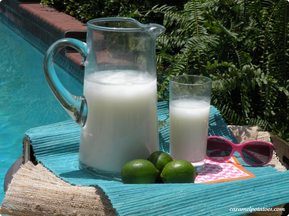 In your pitcher, mix in the sweetened condensed milk with the lime juice. At this point you can taste test to make sure it is sweet enough. If not just add a little more sugar. Add ice and serve. This does not store well, so make it just before serving.