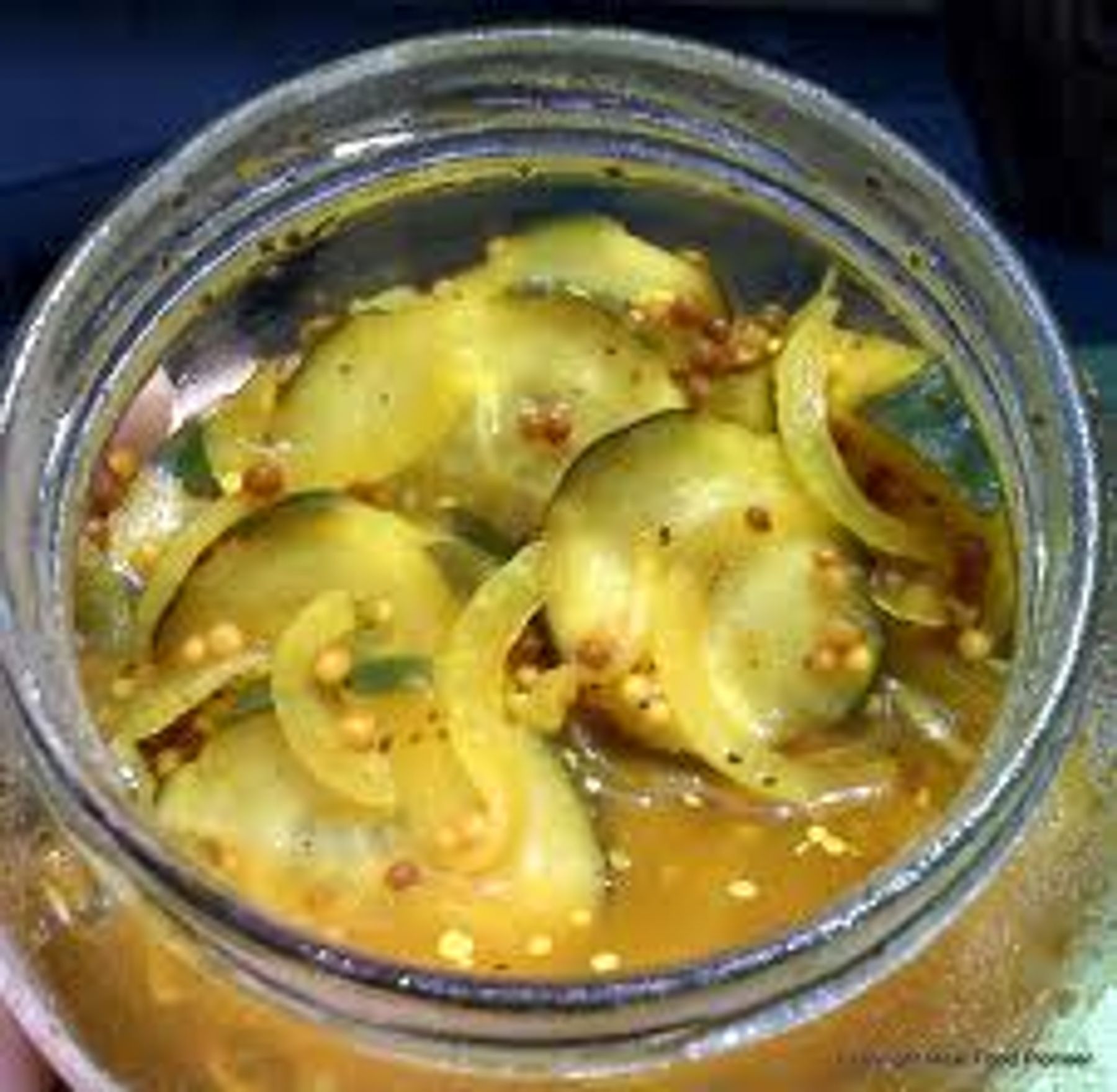 Let all ingredients, except onions and cucumbers, come to a boil. Then put in cucumbers and onions. Heat well .Pack in hot jars and seal at once.