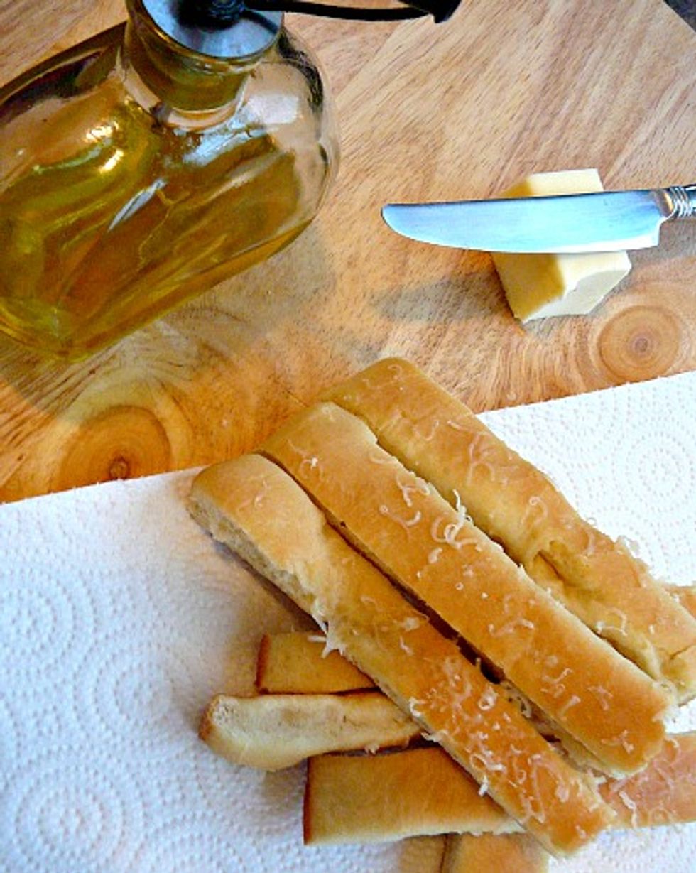 Once the dough cycle is finished, roll the dough out onto a 10×12 greased cookie sheet. Cut the dough into 24 slices and let rise for an hour. ...