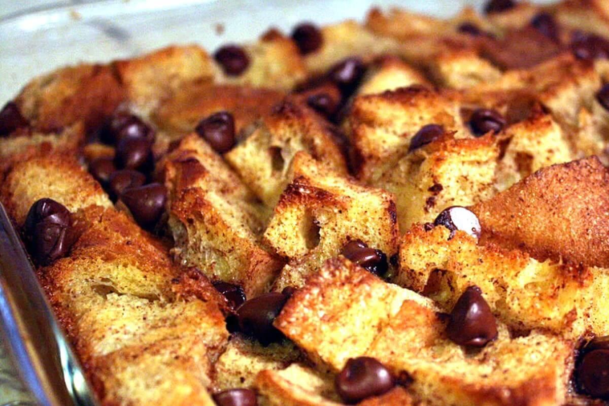 - Break the bread into small pieces and place it in an 8-inch square baking pan. Drizzle melted butter or margarine on top of the bread. Sprinkle with...
