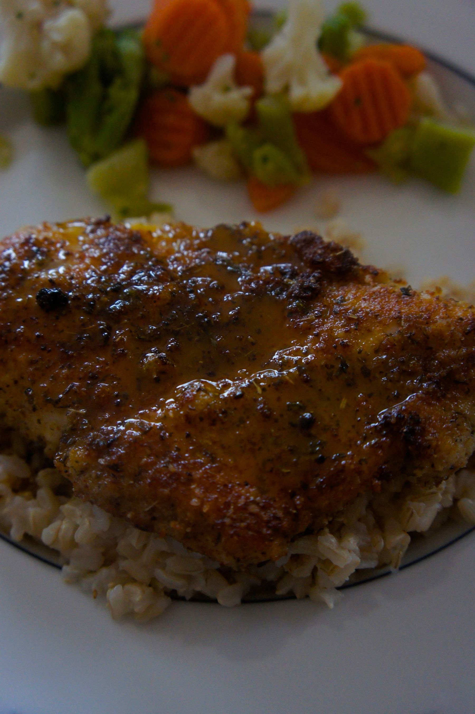 Place milk in a shallow bowl. In another shallow bowl combine the bread crumbs, Parmesan cheese, 1/2 teaspoon Italian seasoning and garlic powder.